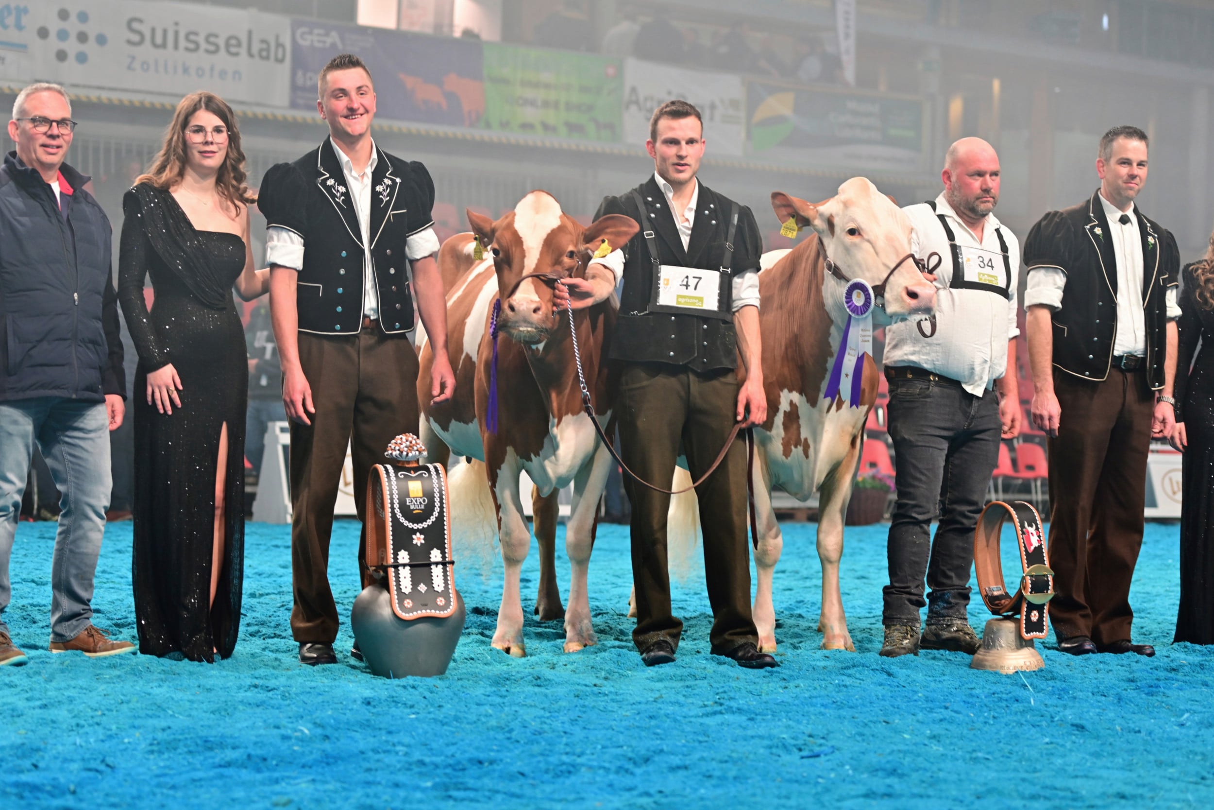 Auch die Championwahl liess so manches Züchterherz höher schlagen, Momente für die viele der Anwesenden Leben. «Ich bekomme richtig Gänsehaut, wenn ich diese Kühe hier sehe», so Eichenberger vor seinem wohl schwierigsten Entscheid des Tages. Für das Finale stellte er nochmals sechs Kühe ins Line-up, bevor er die Entscheidung traf. Für mich war es eine sehr enge Entscheidung. Die Championkuh ist im Becken noch eine Spur feiner als die Reserve», begründete der Richter seine Wahl.Den Titel Champion Swiss Fleckvieh gewann Kilian Nevada von Daniel und Adelheid Graf, Bleiken BE. Auf den zweiten Platz und damit zum Reserve Champion wurde Schwarzbach Aslan Hanova von Florian Matter, Rubigen BE gewählt. Als Mention Champion wurde Strubelblick Kilian Mayla von Fritz Wenger, Pohlern BE ausgezeichnet.