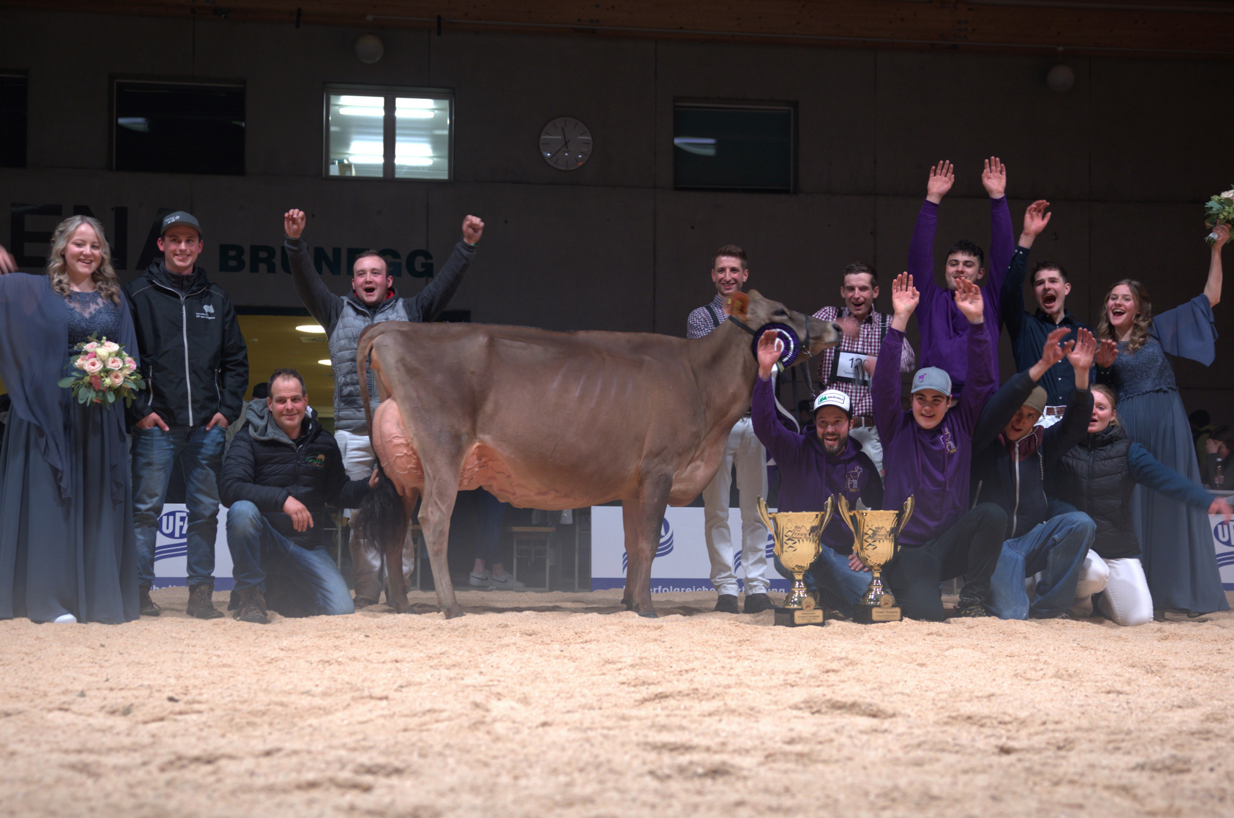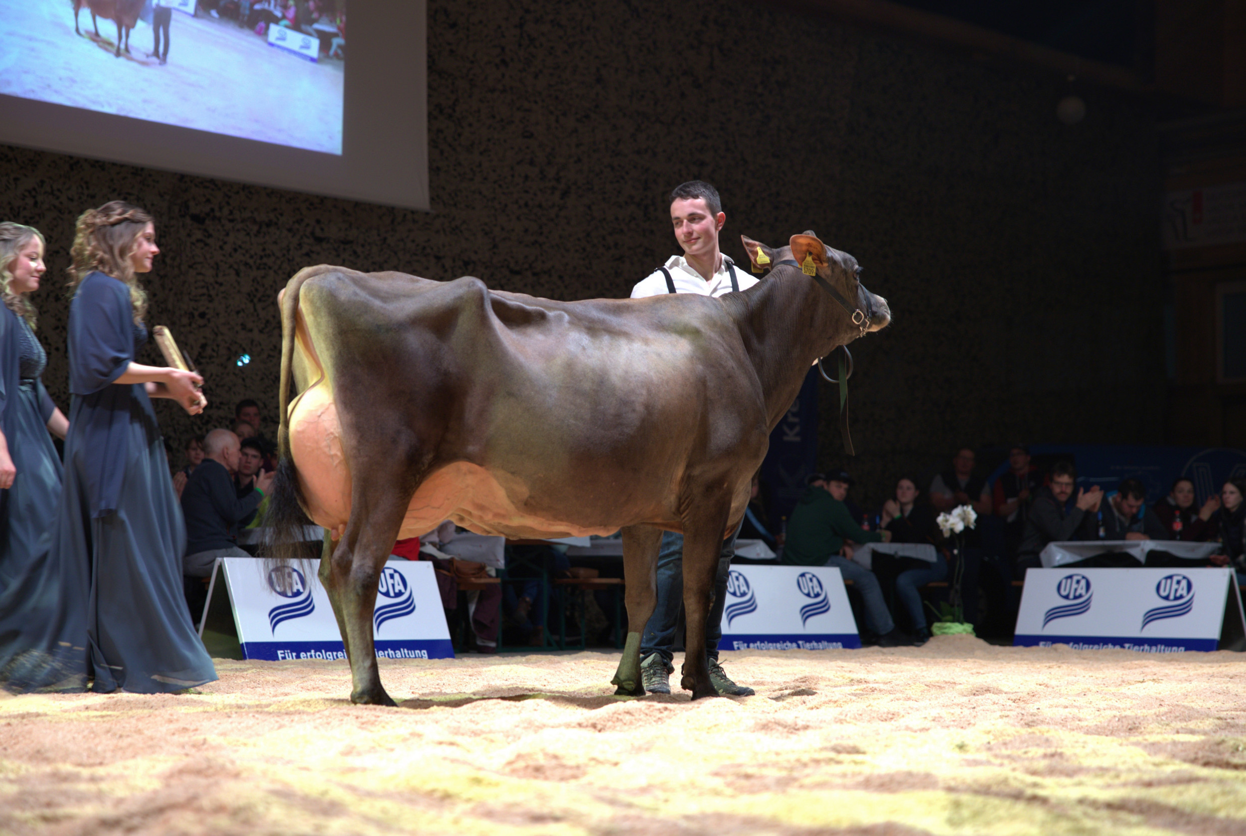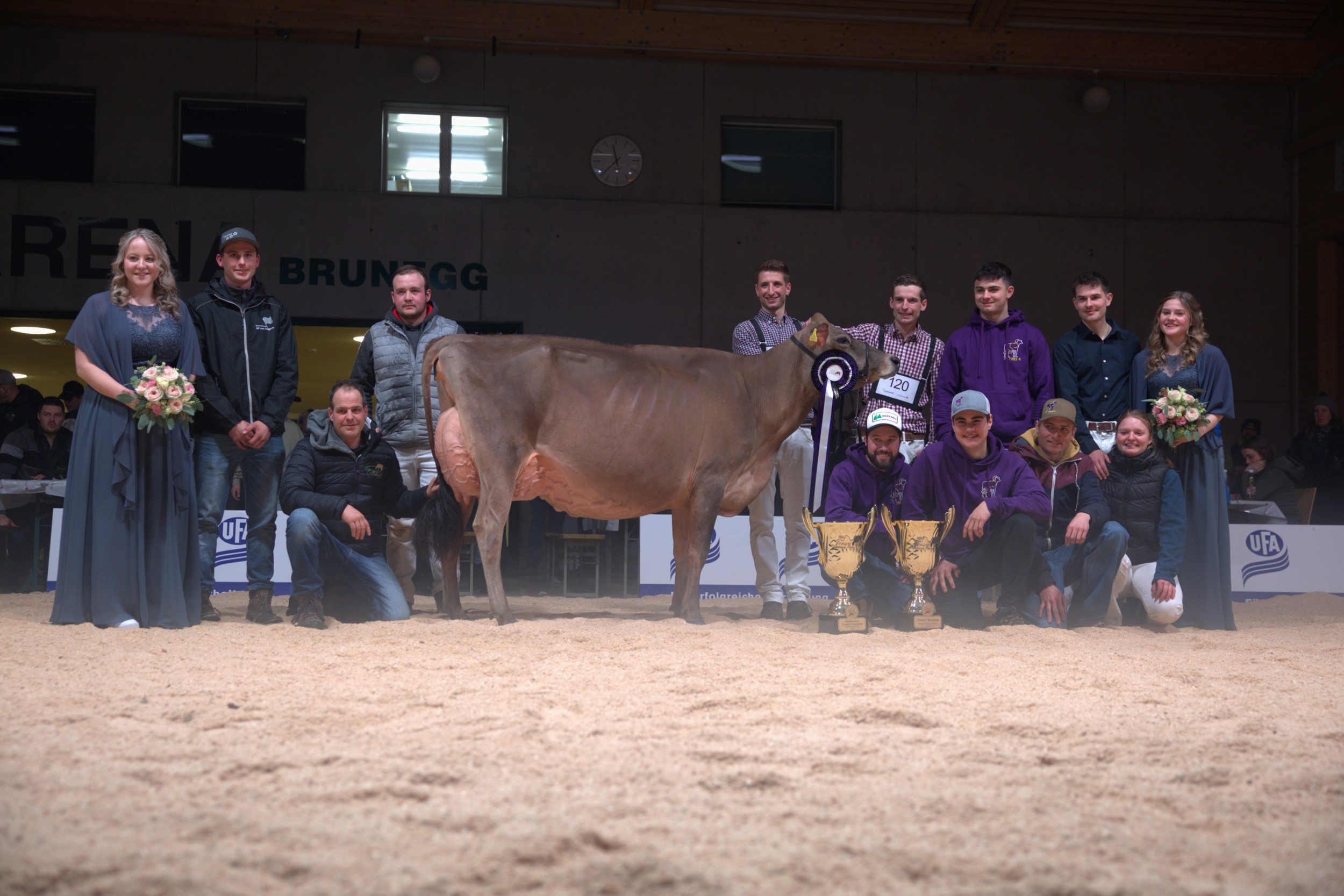 Den Cheese-Queen-Titel holte sich Victorious Zora aus dem Betrieb von Matthias Jakob, Zollbrück BE. Sie überzeugte nicht nur mit ihrem Auftritt im Ring, sondern vor allem mit ihrer aussergewöhnlichen Inhaltsstoffleistung: In ihrer besten Laktation erreichte sie beeindruckende 11,4 % Fett und Eiweiss und stellte damit ihre besondere Eignung für die Inhaltsstoffproduktion eindrücklich unter Beweis.