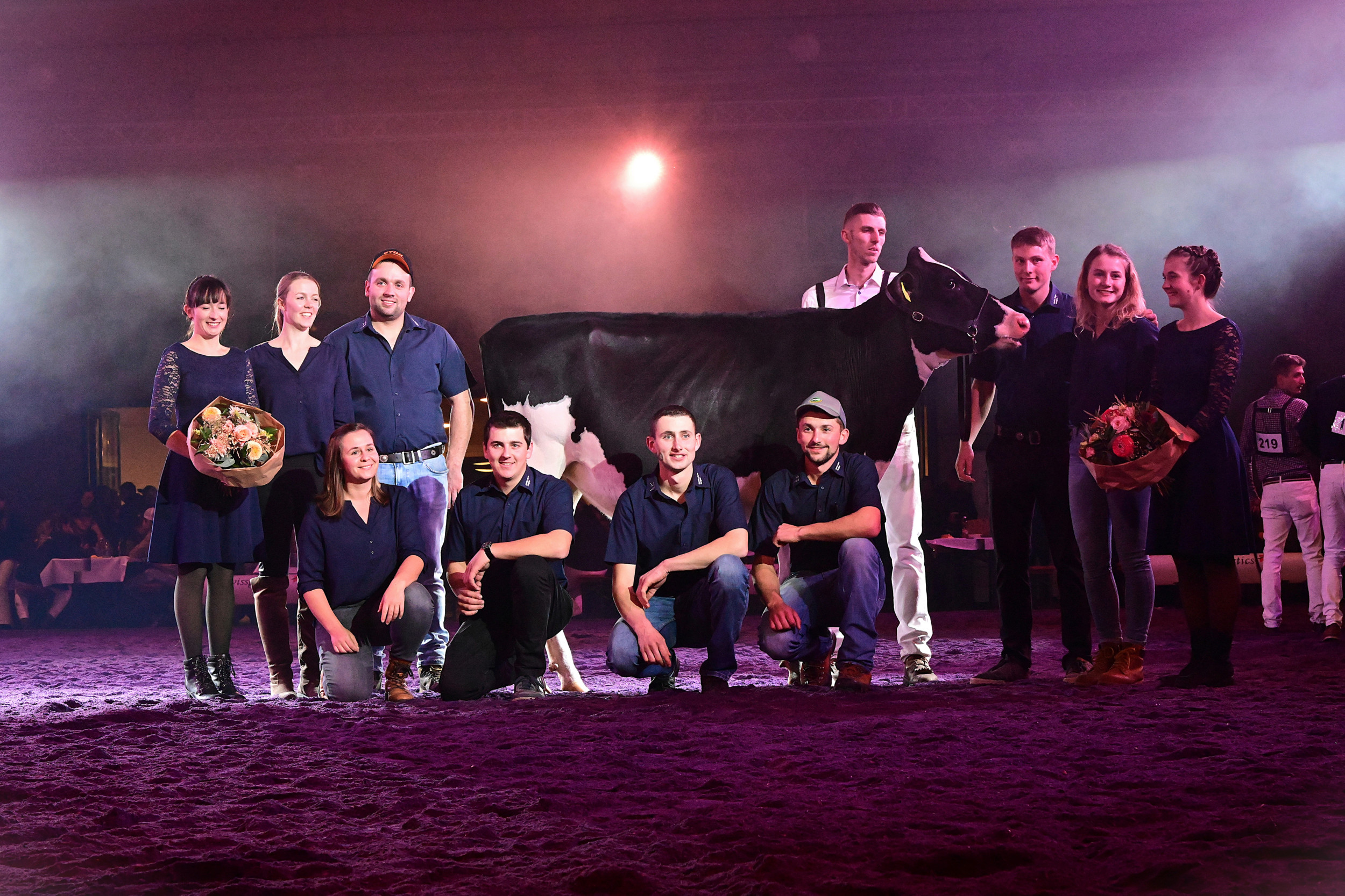 Supreme Champion 2024: Drognens Reset Roxane, Maxime Waeber, Billens FR; und das damalige OK der Junior Expo Aargau.