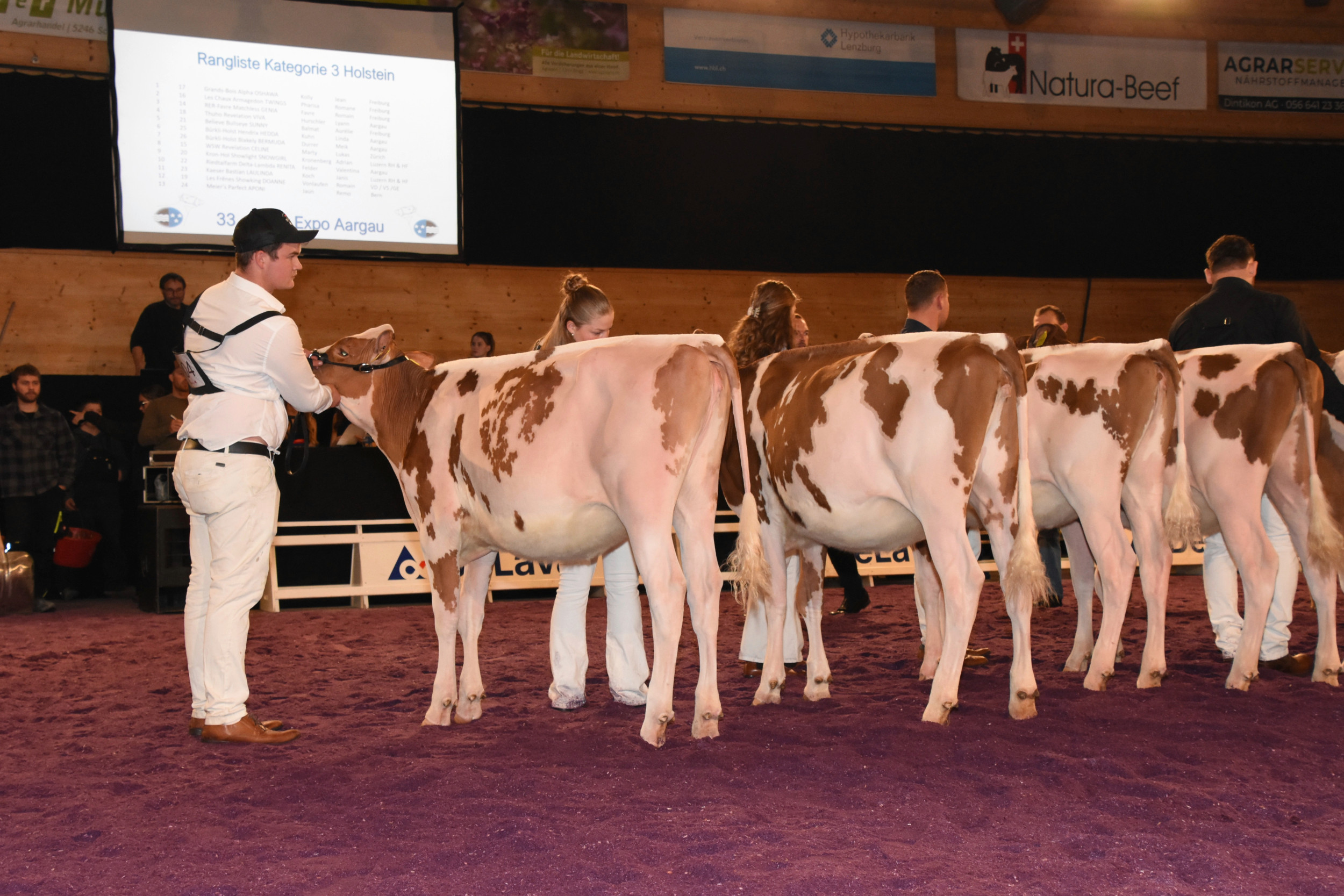 (v.l.) Kat. 20 : 1. R & C Bürgi Cows Tatoo Kisha, Severin Bürgi, Lungern OW; 2. Heinzer Gen. Has it all Edina, Ramon Wiss, Walchwil ZG; 3. Drognens Dropbox Samara, Benjamin Suard, Siviriez FR.