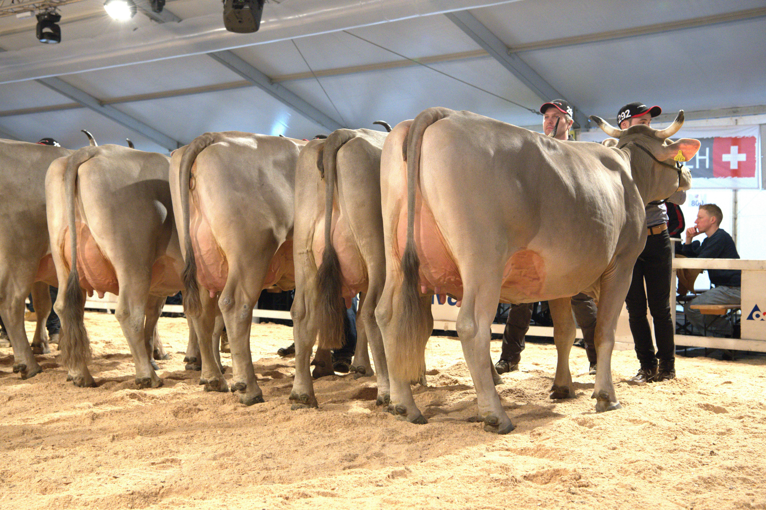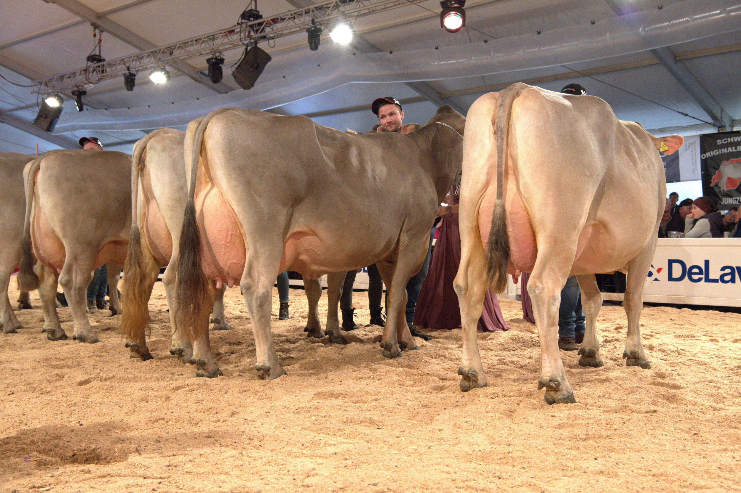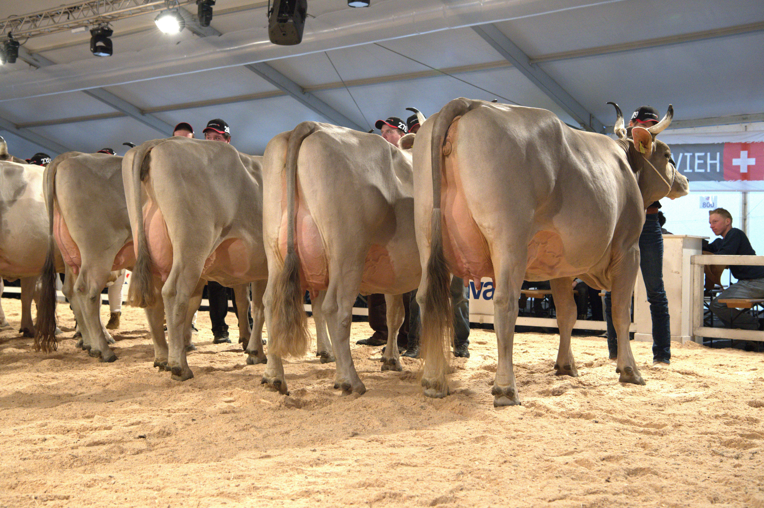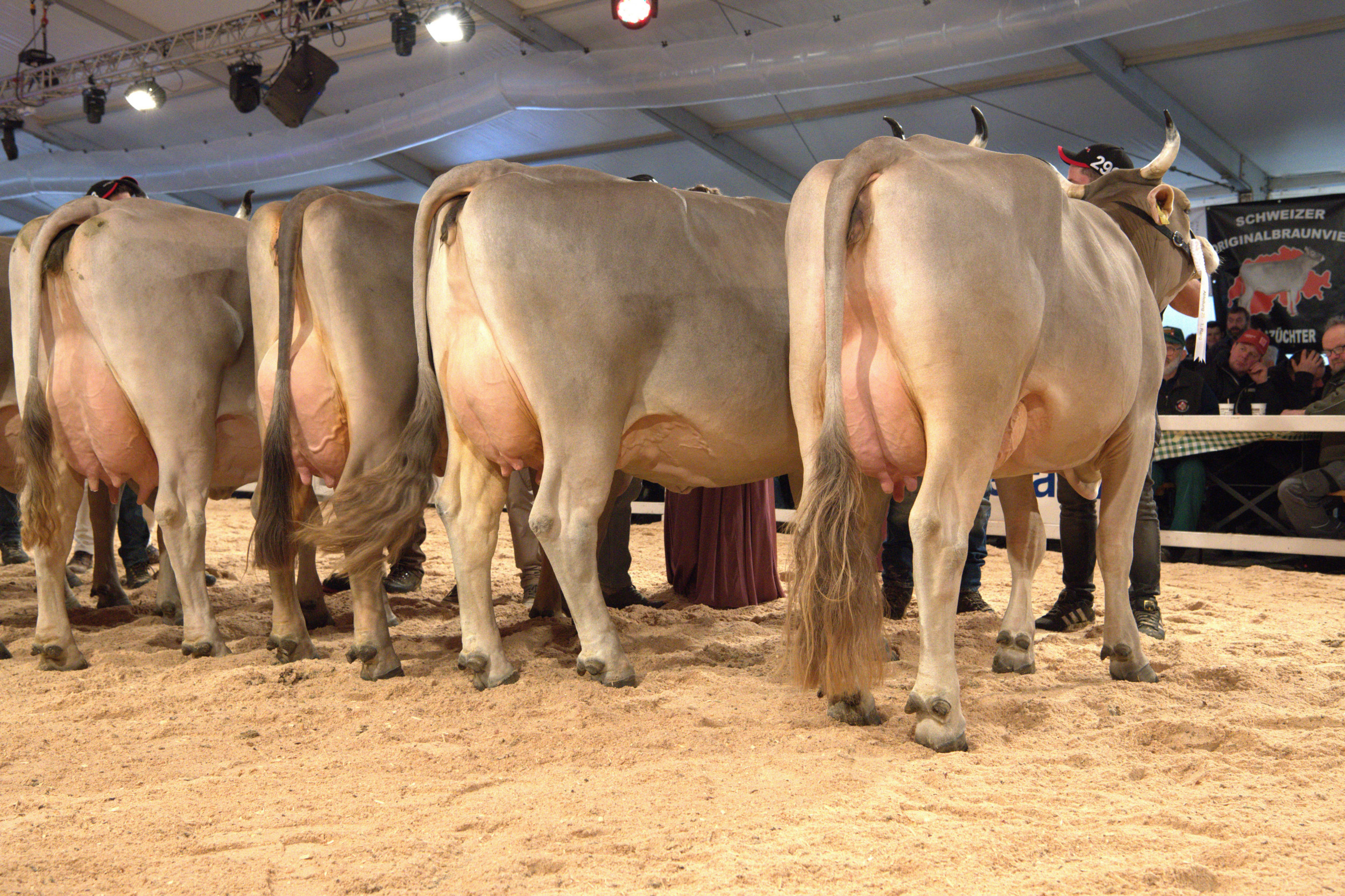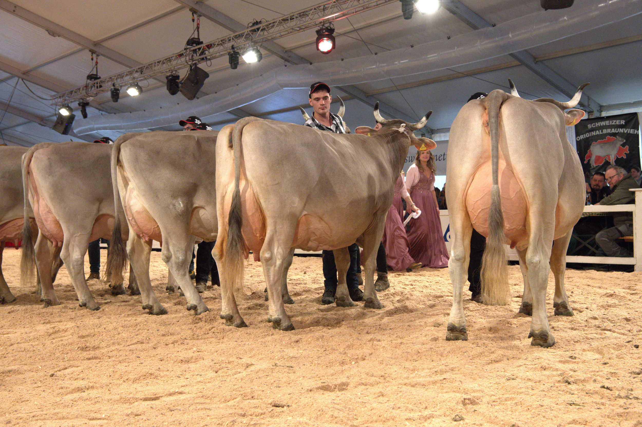 Richter Stefan Hodel zeigte sich vom Line-up begeistert und meinte: «Hier schlägt einem das Herz höher, ein fantastisches Bild. Ich habe schon einige nationale Original-Braunvieh-Ausstellungen richten dürfen, und gerade in der Euterqualität wird es immer besser.» Weiter betonte er: «Es ist heute klar sichtbar, dass man eine gut bemuskelte Tiere mit einem hoch aufgehängten, gut beaderten Euter züchten kann – das ist eine fantastische Züchterarbeit.» Vor seiner Endentscheidung sagte Hodel: «Die Qualität ist hier sehr, sehr hoch. Das sind absolut würdige Vertreterinnen im Ring, die Euterqualitäten sind praktisch identisch».