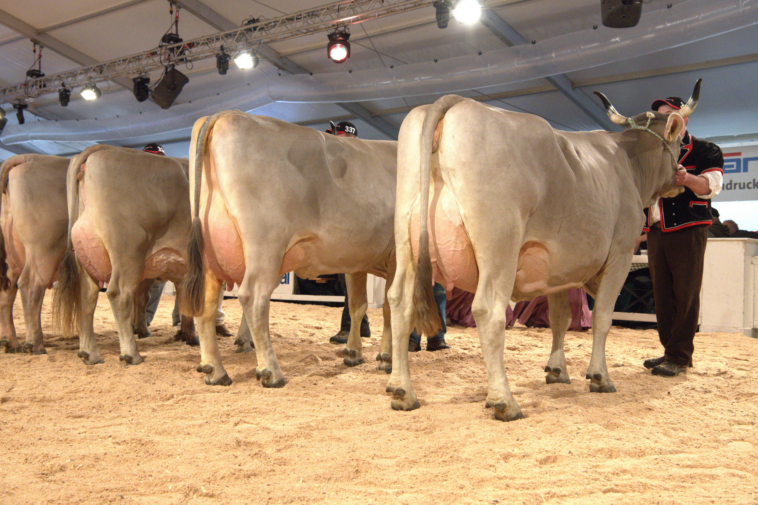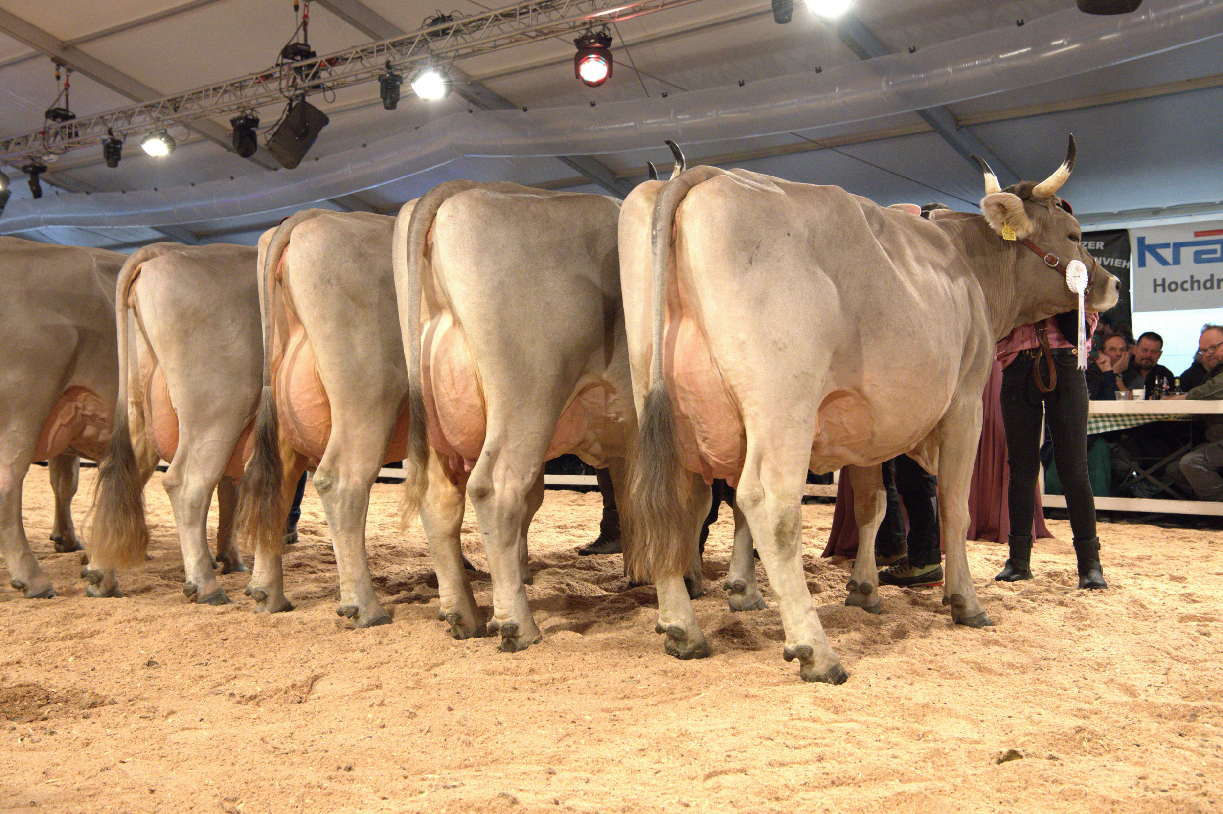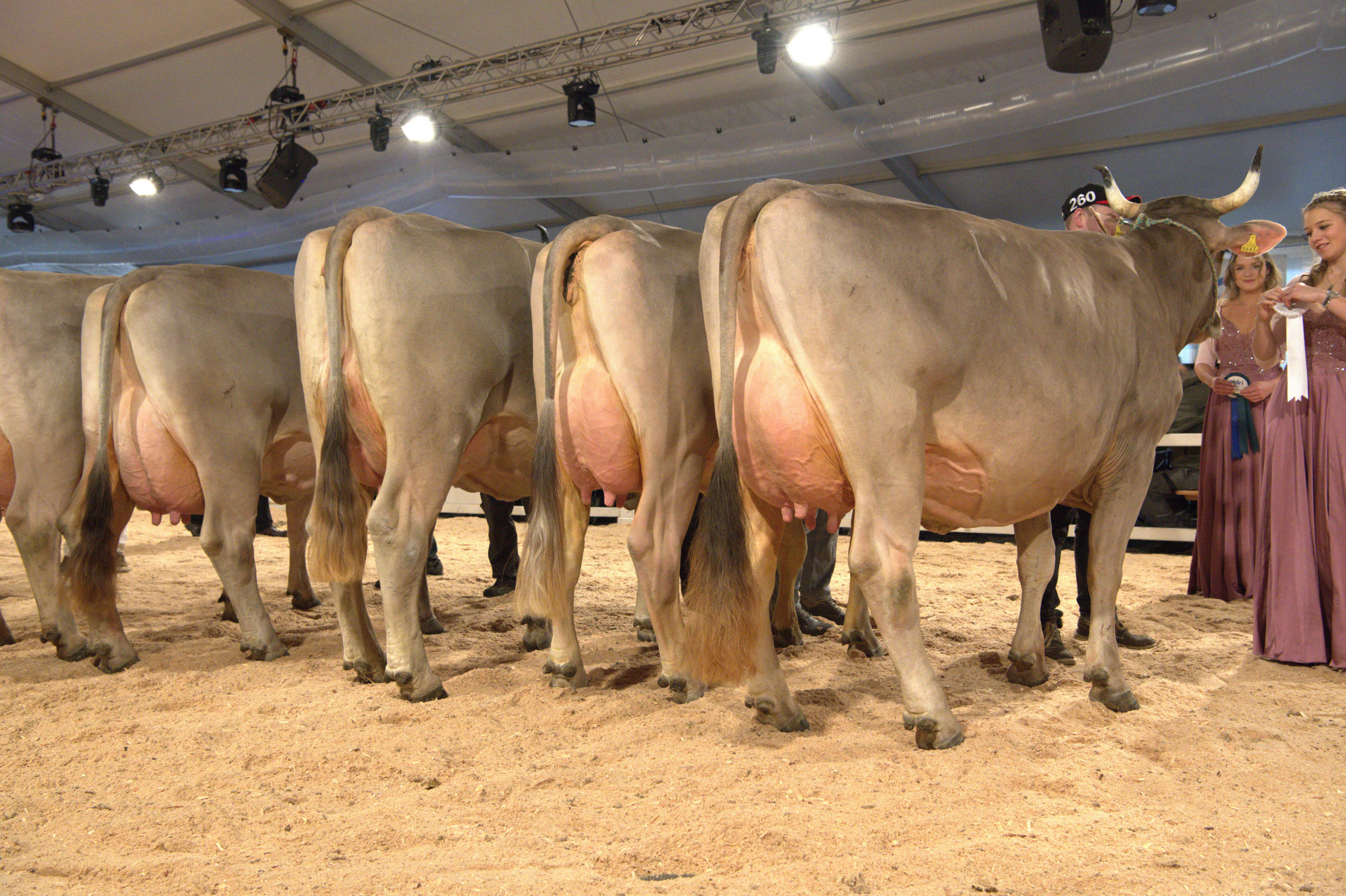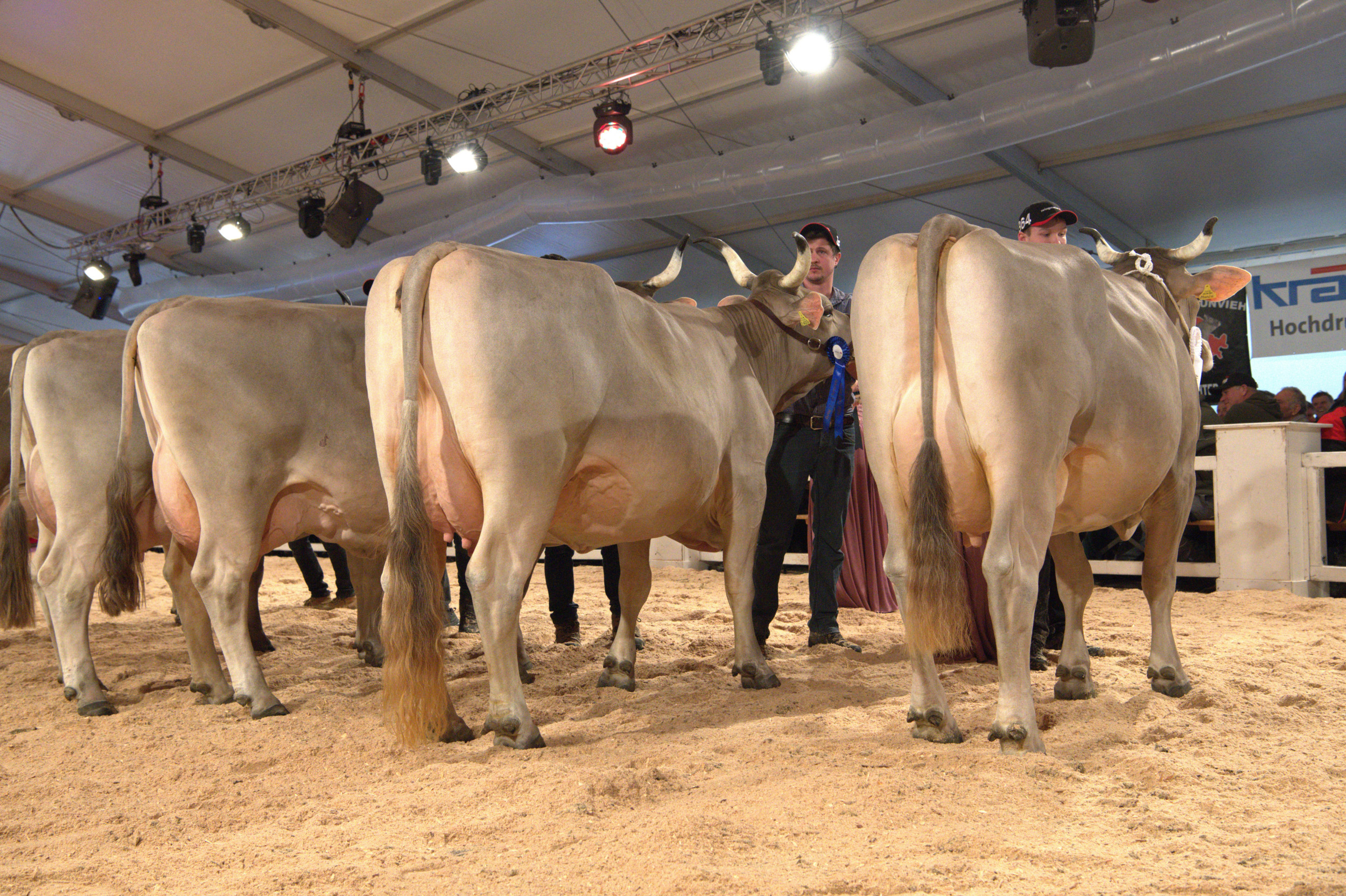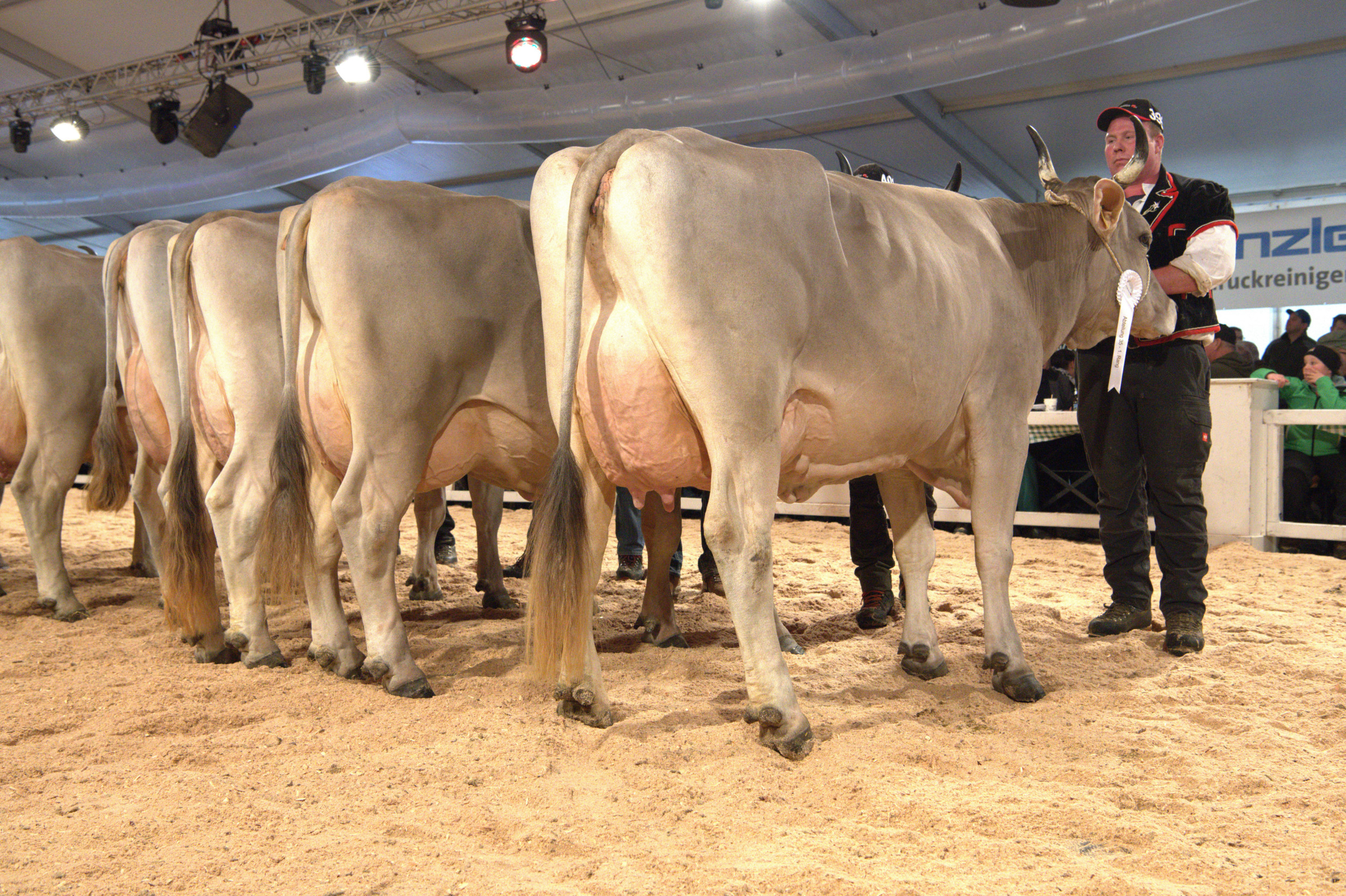 Richter Stefan Hodel zeigte sich vom Line-up begeistert und meinte: «Hier schlägt einem das Herz höher, ein fantastisches Bild. Ich habe schon einige nationale Original-Braunvieh-Ausstellungen richten dürfen, und gerade in der Euterqualität wird es immer besser.» Weiter betonte er: «Es ist heute klar sichtbar, dass man eine gut bemuskelte Tiere mit einem hoch aufgehängten, gut beaderten Euter züchten kann – das ist eine fantastische Züchterarbeit.» Vor seiner Endentscheidung sagte Hodel: «Die Qualität ist hier sehr, sehr hoch. Das sind absolut würdige Vertreterinnen im Ring, die Euterqualitäten sind praktisch identisch».