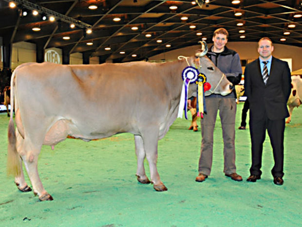 Alexander von Bergen aus Hasliberg Hohfluh gewinnt bei seiner ersten Swiss-Expo-Teilnahme gleich den Championne-Titel bei den Original-Braunvieh Kühen.