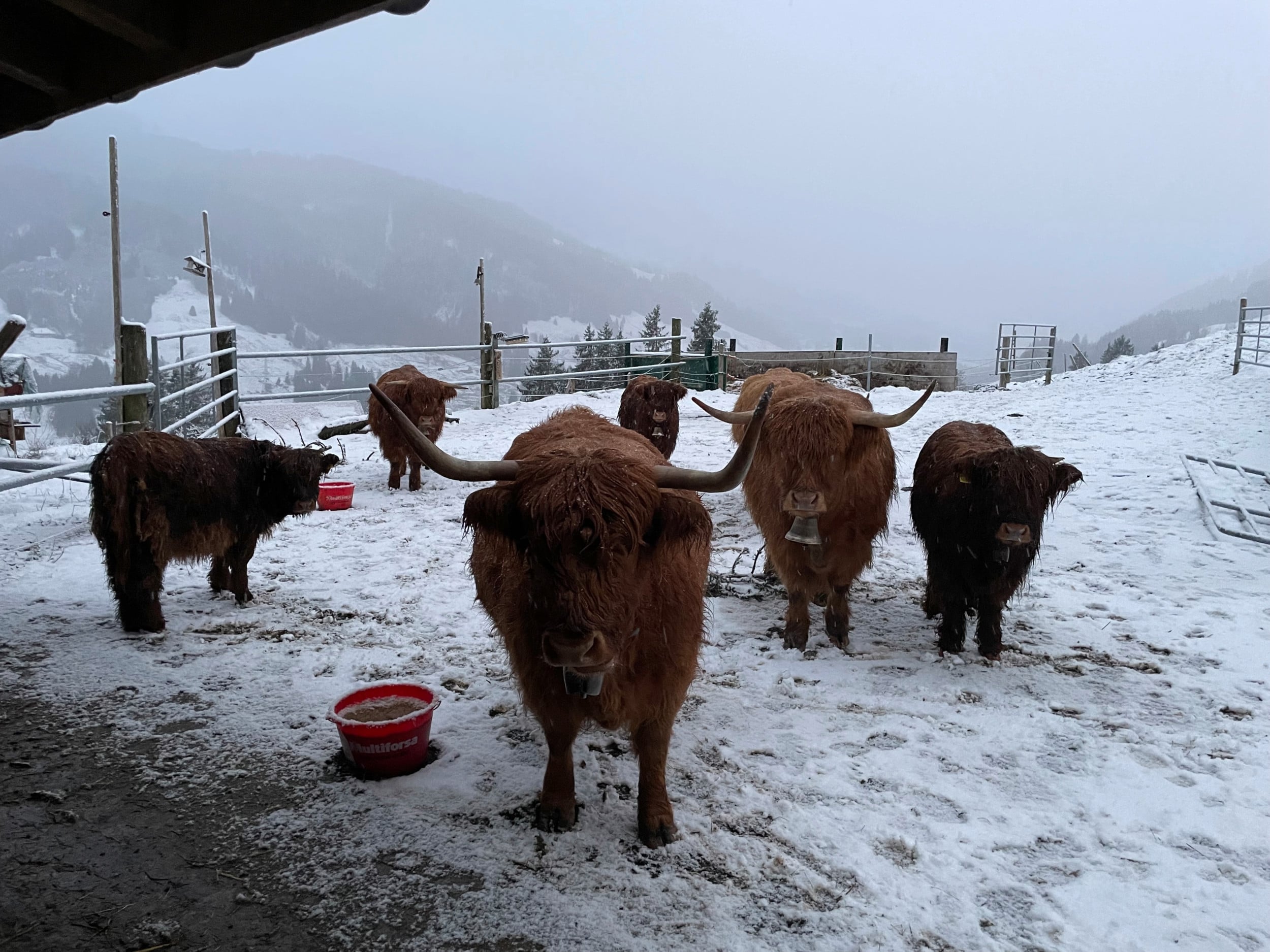 Das Fell besteht aus dem langen Deckhaar, das ölig und wasserabweisend ist, sowie einer flauschigen Unterwolle, die warm hält. Aus dem ausgekämmten Deckhaar entstanden früher Strickwaren, Polsterungen und Filze. Es ist also kein Wunder, dass das Highland Cattle in der schottischen Heimat – eben im schottischen Hochland – auch «Hairy Coos» (haarige Kühe) genannt wird.