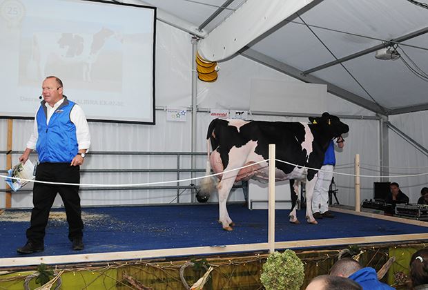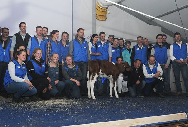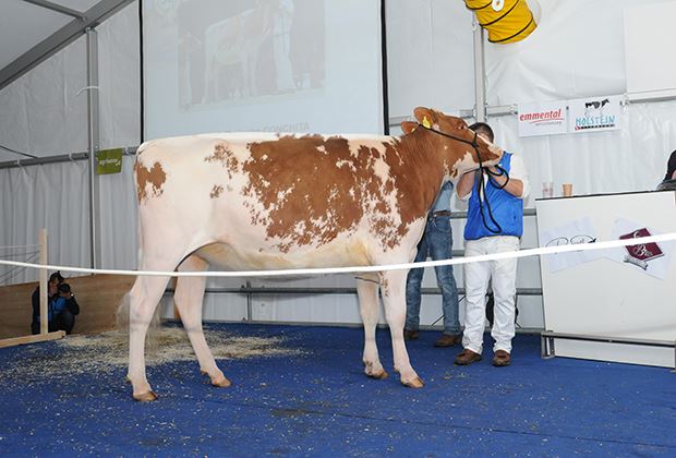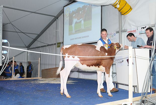 Rot war auch beim zweithöchsten Angebot angesagt. Die erste Wahl einer direkten Apple-Tochter (Diamondback oder Redburst x KHW Regiment Apple) galt 17000 Franken. Verkäufer ist Nohl Holsteins aus Frankreich. Die deutschen Rainer Engelke und Eike Spangenberg verkauften Garay Awesome Barbara für 16000 Franken. Sie ist eine Tochter der Madison-Kategoriensiegerin Willowhaven Goldwyn Bliss und geht auf Tony Beauty zurück. Die Drittlaktierende Ruegruet Barbwire Kimberly wurde im Frühling an der Expo Bulle Kategoriensiegerin. Ruegruet Holsteins konnte die mit 86 Punkten eingestufte Kimberly für 13500 Franken verkaufen. Auktionator Andreas Aebi konnte mit Kolly-JL Barbwire Chonchita eine andere Barbwire-Tochter für 13500 zuschlagen. Bei Chonchita handelt es sich um keine geringere als um die Junior Champion der Swiss Expo 2016. Diese absolute Traumrind aus der Zucht von Jean-Louis und Lionel Kolly aus Pont-la-Ville ist im September mit Redstream gesext besamt.