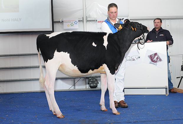 Nohl Holsteins verkaufte auch Nohl Haly. Die Aftershock-Tochter aus der Madison- und Toronto Grand Champion RF Goldwyn Hailey EX 97 kostete 13000 Franken. Das Kalb PJP Elude Infinity von SBro und Ruegruet Holsteins galt 12000 Franken und ist eine Tochter der Meridian-Tochter von PJP Inouie welche die Nummer 2 nach Typzuchtwert in Europa ist.