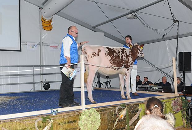 Der Blick in den Katalog liess schon im Vorfeld erahnen, dass es eine sehr starke Auktion mit hohen Preisen geben wird. Unter den rund 50 Angeboten der Rassen Holstein, Red Holstein, Brown Swiss und Jersey hatte es Genetik der weltweit besten Kuhfamilien der jeweiligen Rassen. Thomas Ender, Chefeinstufer bei der Linear AG, stellte zusammen mit Stefan Hodel, Chefexperte Tierbeurteilung bei Braunvieh Schweiz, die Angebote vor. Enders unmissverständlicher Kommentar zum Angebot: Besser geht nicht.