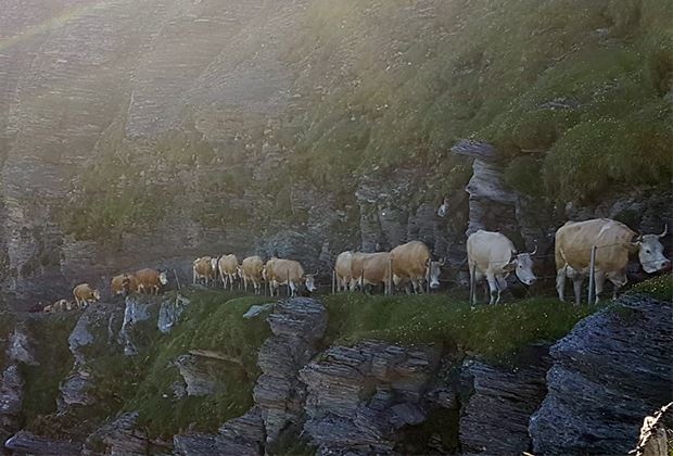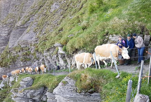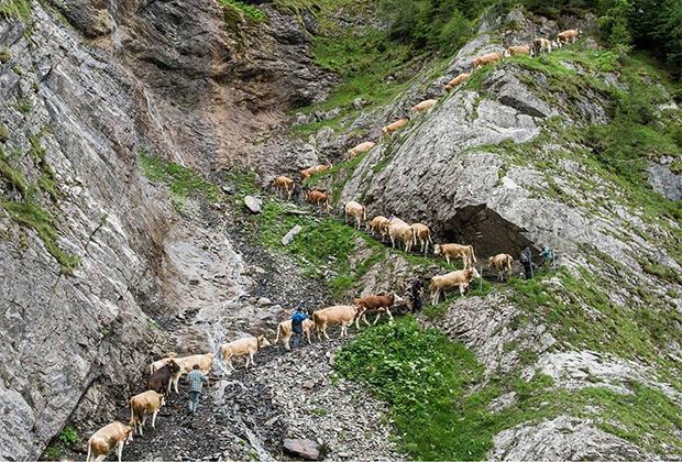 Sennen und Hirte starteten mit rund 500 Stück Vieh um 5.30 Uhr in Adelboden BE zum Alpaufzug auf die Engstligenalp. Rund 600 Höhenmeter legte die Züglete in anderthalb Stunden zurück. Spektakulär und eindrücklich gestaltet sich der Start für den Alpsommer im Berner Oberland Jahr für Jahr. Ein schmaler, steiniger Weg entlang der Felsen an Wasserfällen vorbei, haben die Tiere und Älpler zu bewältigen.