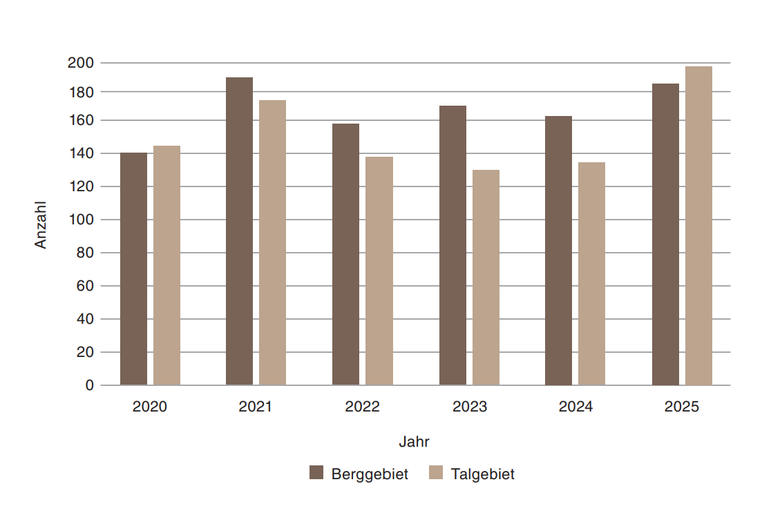 Insgesamt 384 Kühe, 186 im Berg- und 198 im Talgebiet, dürfen sich mit der abgeschlossenen Laktation aus dem Jahr 2025 mit dem Economy Star schmücken. Wie Braunvieh Schweiz mitteilt, ist dies ein neuer Rekord. Besonders im Talgebiet ist die Zahl der ausgezeichneten Kühe deutlich gestiegen.