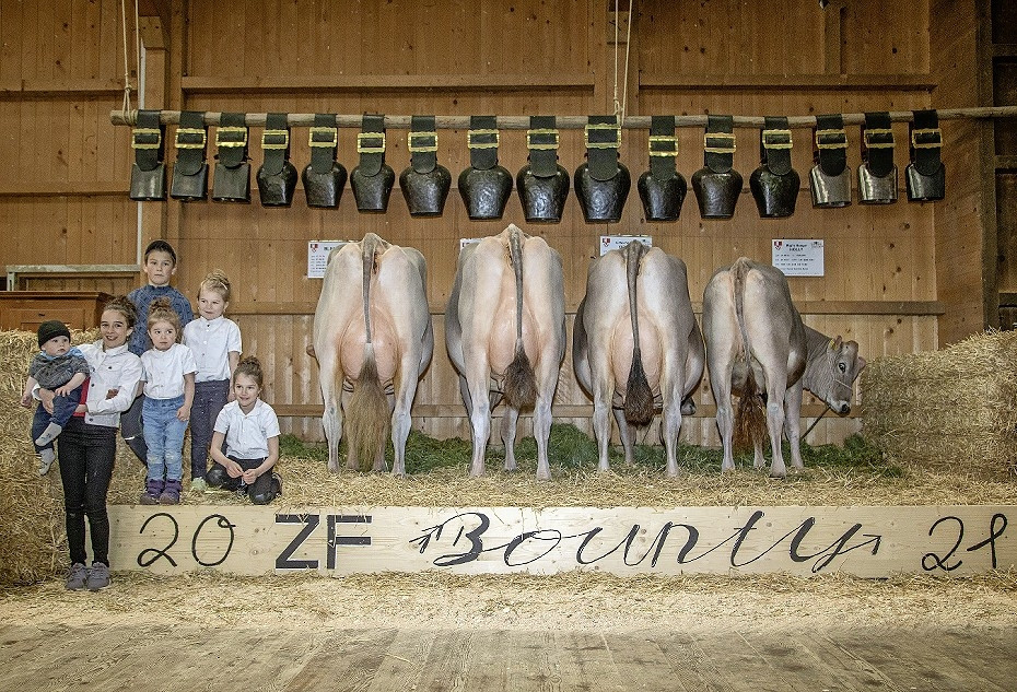 Für weibliche Zuchtfamilienschauen gilt: Auffuhr von mindestens vier Nachkommen, davon zwei Kühe mit mindestens je einer abgeschlossenen Laktation. Für eine zweite Beurteilung sind sechs Nachkommen mit mindestens vier Kühen nötig. Die Nachkommen können aus Embryotransfer stammen.