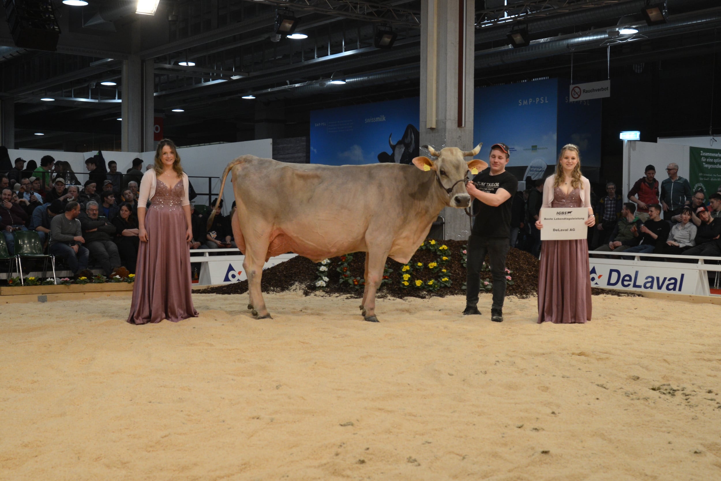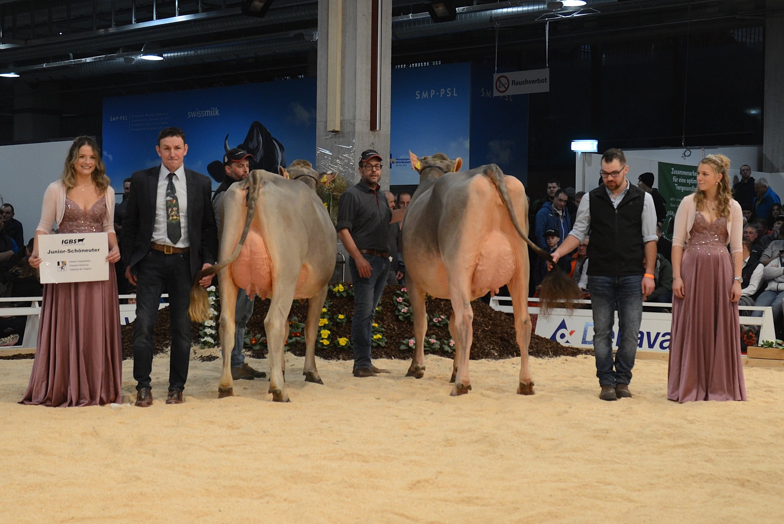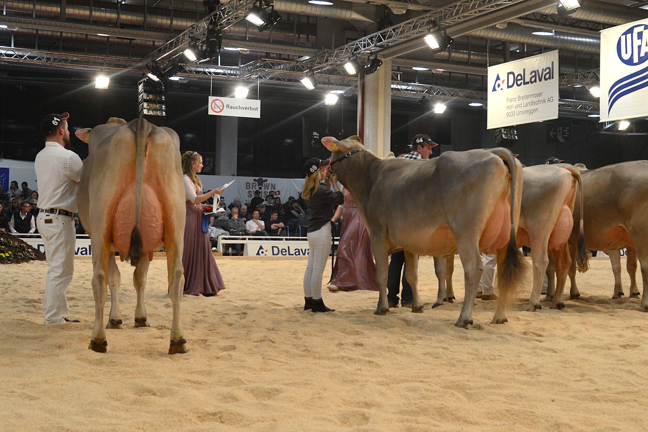 Um 17 Uhr eröffnet die Präsentation der erstlaktierenden Kühe das Abendprogramm. Nach der Wahl der Juniorchampion folgt die Elite-Auktion, anschliessend treten die älteren Tiere in den Ring. Hochklassige Tiere und Entscheidungen sind garantiert.