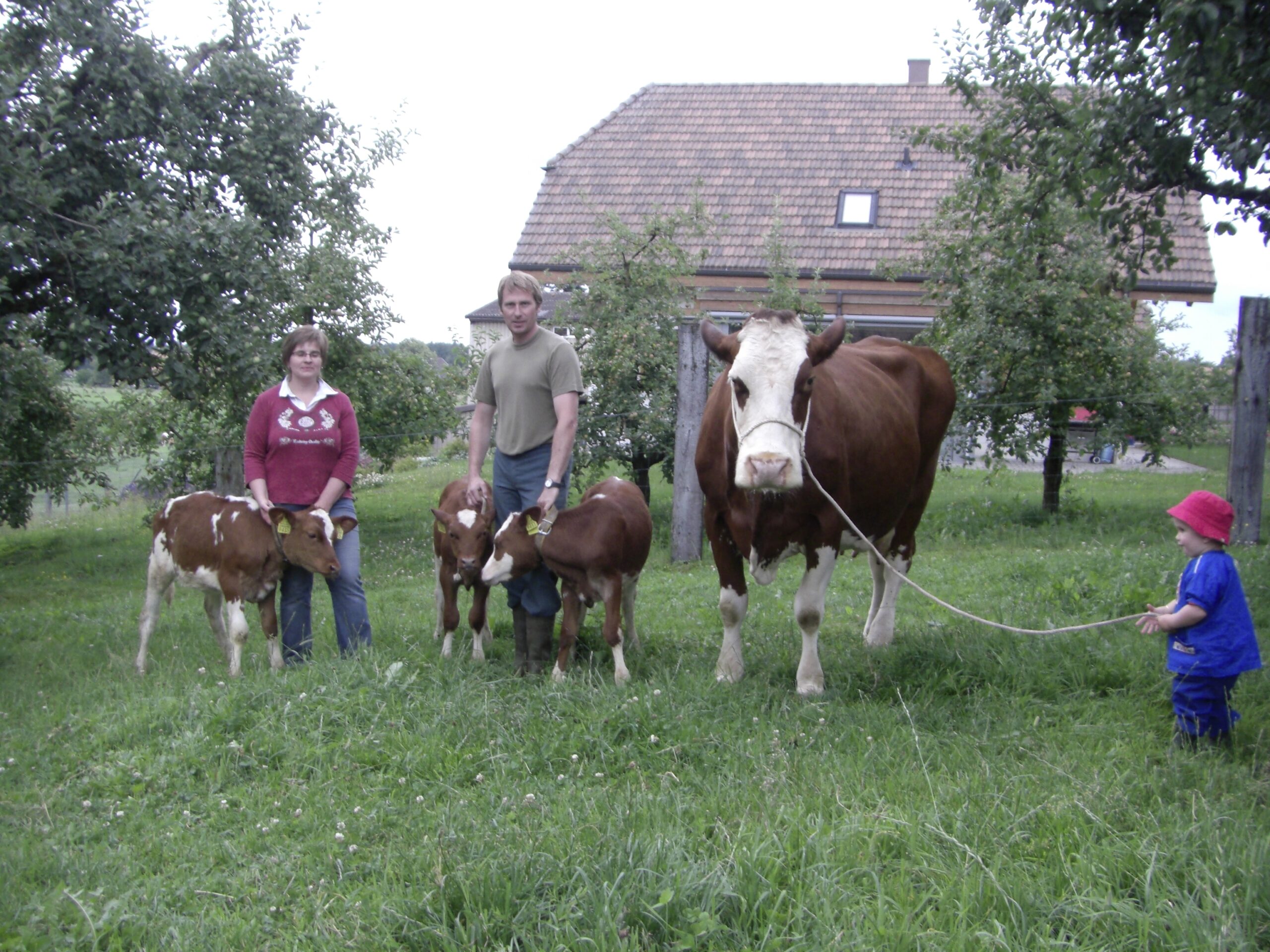 Der 11. April 2009 war ein ganz besonderer Tag. Daniel Bütikofer war auf dem Feld am Kartoffelnsetzen, als seine Frau zu ihm kam. «Sie hat mich geholt, weil eine Kuh Drillinge geboren hatte», erinnert er sich. Seine Frau war ab der Geburt des ersten Kalbes im Stall dabei. «Sie hat die Kälber eigentlich ohne Hilfe zur Welt gebracht», sagt Marianna Bütikofer, noch sichtlich beeindruckt.