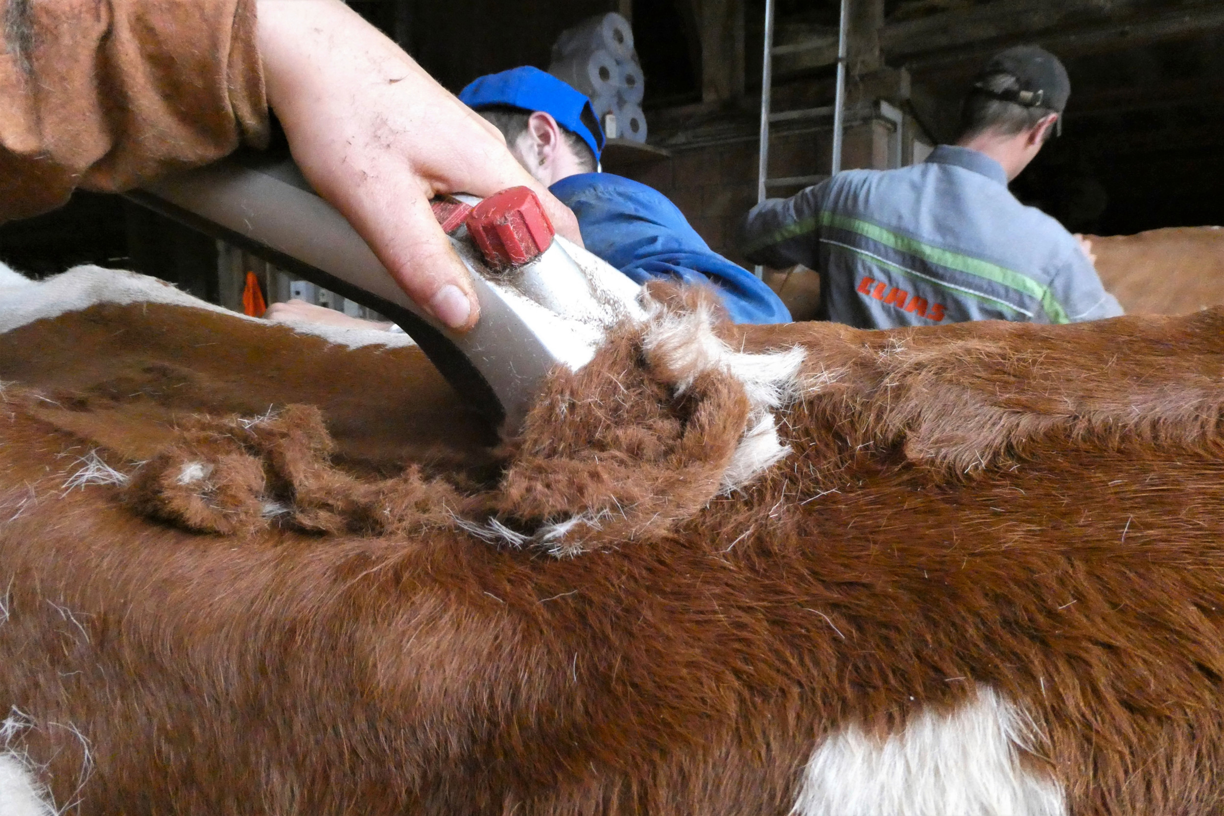 Eine der ersten Handlungen vieler Tierhalterinnen beim Einstallen der Rinder ist das Scheren. Das Winterfell nach der Herbstweide, unvermeidbarer Mist auf der Liegefläche und teils feuchte Stallluft sind ungünstige Kombinationen. Die Tiere können schwitzen, Mist bleibt kleben, Parasiten können sich einnisten. Wenn Milben oder Läuse einmal im Stall sind, werden sie häufig ein grosses Problem, da sie so gut wie alle Tiere befallen.