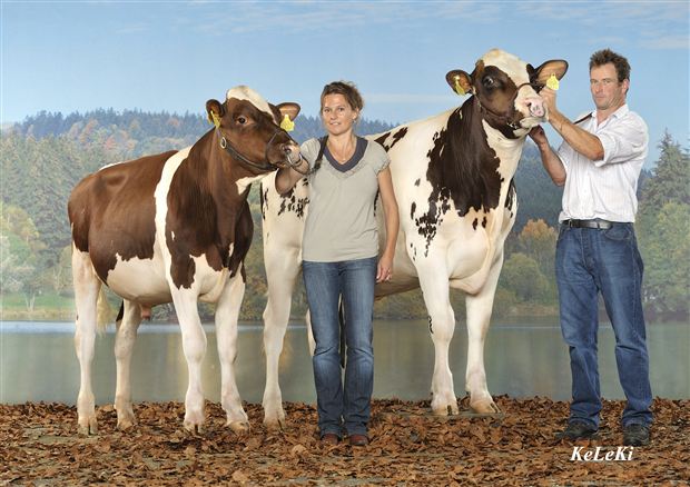 Sicher ist bisher, dass das Gen E+ durch die Kühe Stookey Fagin Scarlet-Red EX 94 und die Milchkanone Cloverlands Skyler Cherry-Red und ihre Nachkommen verbreitet wird.