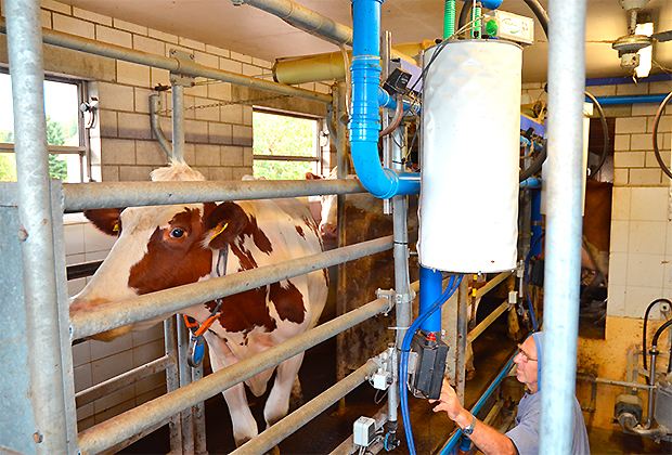 Bilgery ist als Melktechnikberater seit Jahren auf Betrieben unterwegs. «Lärm und Vibrationen führen bei den modernen, elektrisch betriebenen Pulsatoren zu Problemen», hat er beobachtet. «In ihnen entsteht eine Überschallströmung, das äussert sich als spürbarer Knall an der Zitze. Das kann die Milchabgabe einzelner Kühe oder sogar die Melkbereitschaft aller Tiere stören.»