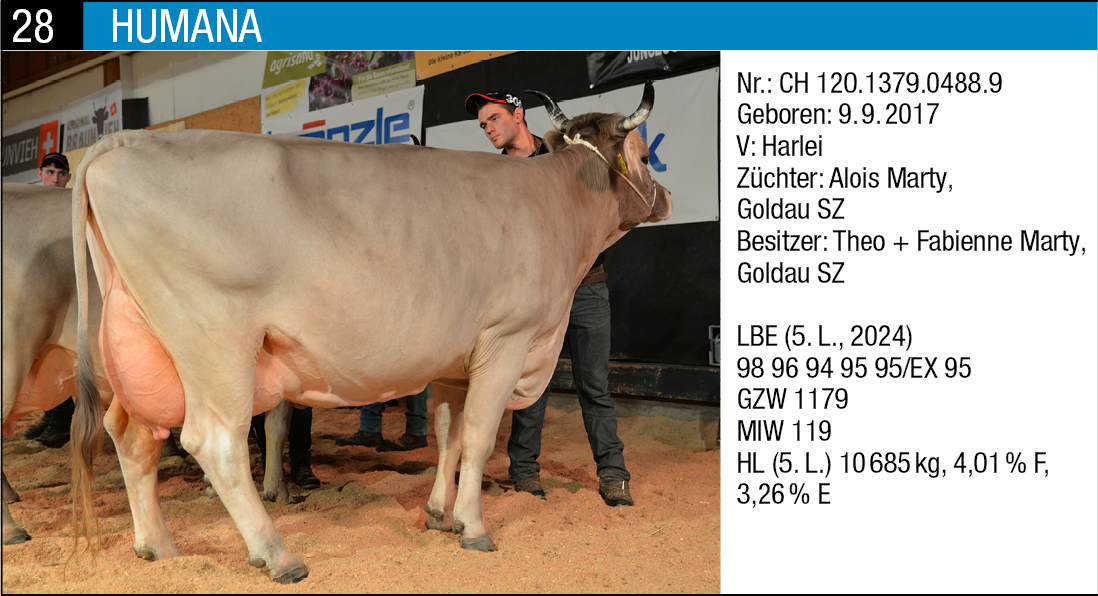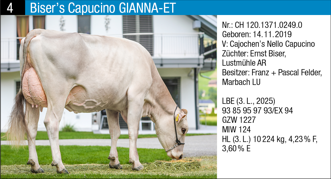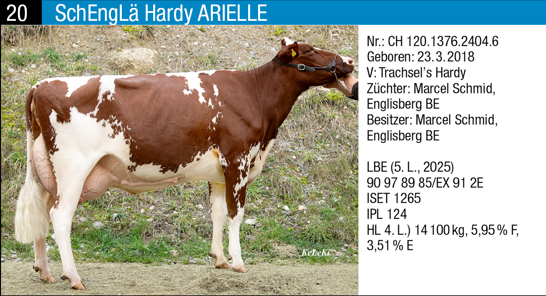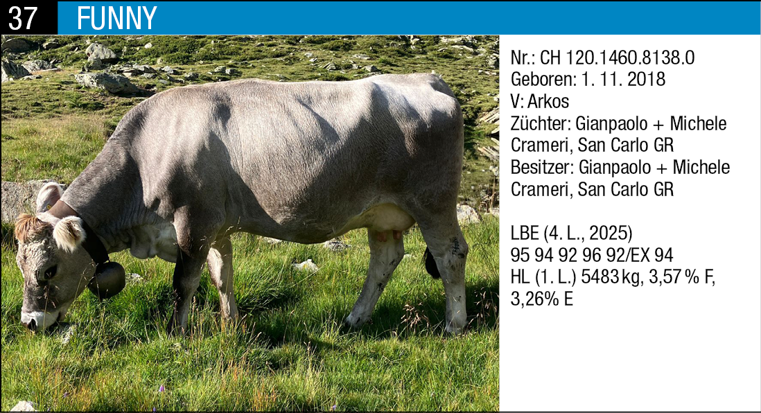 Die Schweizer Rindviehzüchter gehören weltweit zu den besten. Schauerfolge im Ausland und erfolgreiche Genetikexporte zeugen davon. Und nicht zuletzt ist jede Kuh bei diesem Voting ein Beleg dafür, denn beim Wettbewerb «Kühe des Jahres 2025» stehen nur die schönsten der besten Kühe zur Auswahl. Bei den Milchrassen müssen die Tiere zu den besten 10 Prozent der Rasse nach Gesamtzuchtwert gehören. Von diesen wurden jene mit der höchsten linearen Beschreibung und Einstufung (LBE) ausgewählt.