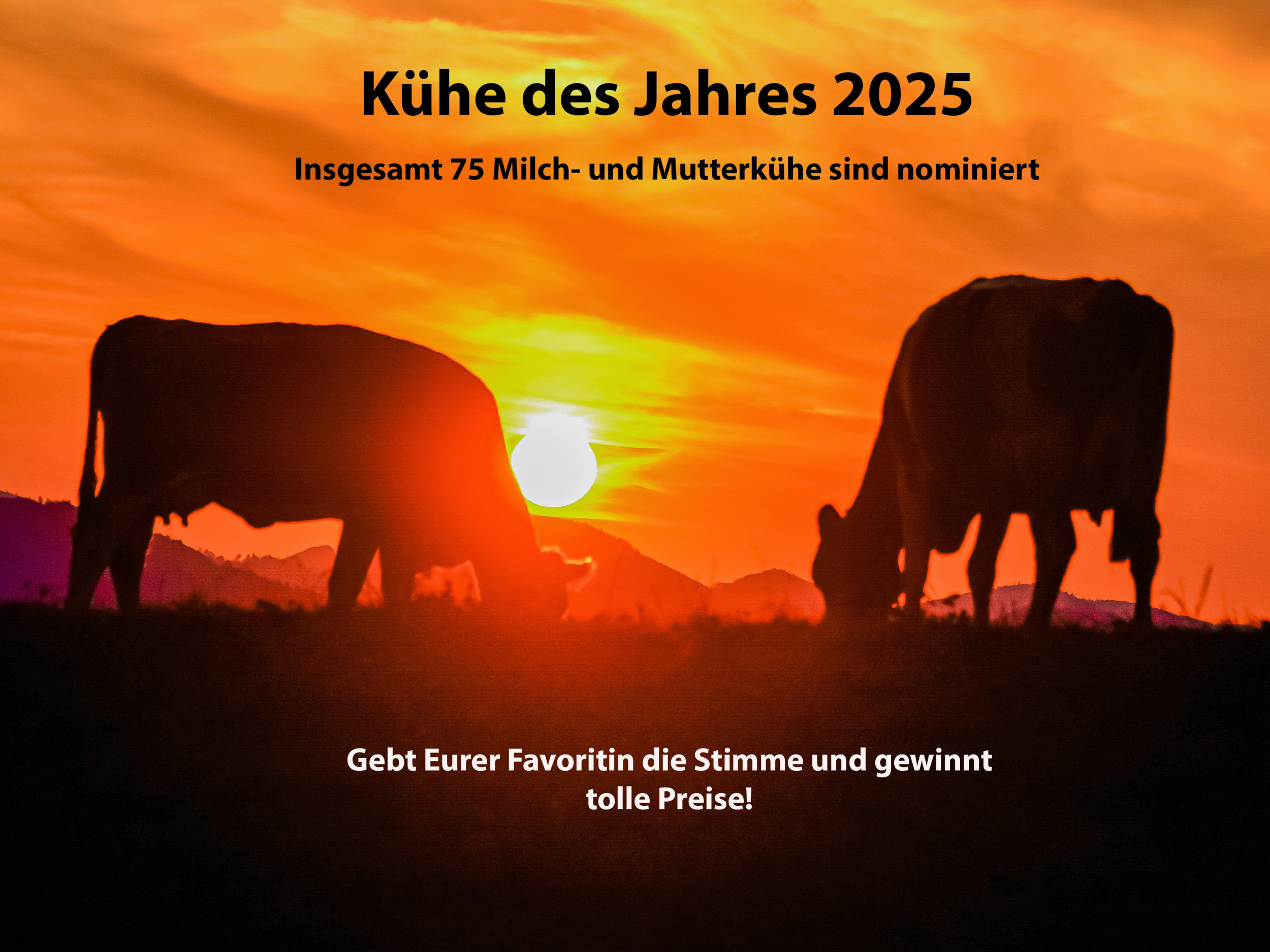 Nun habt Ihr die Möglichkeit, eurer Favoritin die Stimme zu geben. Wählt Eure Milchkuh und die Mutterkuh des Jahres. Es gibt tolle Preise zu gewinnen. Alle Einsendungen nehmen an der Verlosung teil. Mit etwas Glück gewinnt Ihr einen Aluanhänger für Kleintiere im Wert von 7800 Franken von Daltec AG, Domdidier FR, oder einen der weiteren 13 attraktiven Preise gewinnen.