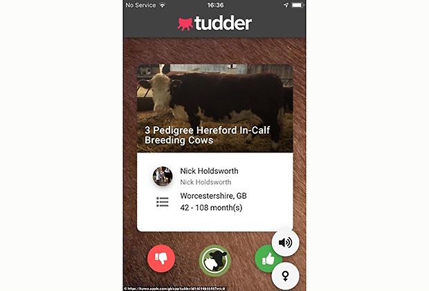 Dem Landwirt auf der App «Tudder» ein Foto sowie das Alter, das Gewicht, der Gesundheitszustand und der Besitzer angezeigt. Ist der Landwirt sicher, dass ein Stier ein guter Match für seine Kuh ist, wischt er wie bei Tinder nach rechts. Der Match wird einem akustischen Muuh unterstützt. «Die App soll helfen, dass für die Tiere der richtige Zuchtpartner gefunden wird», sagt die Entwicklerfirma Hectare zu «Time».