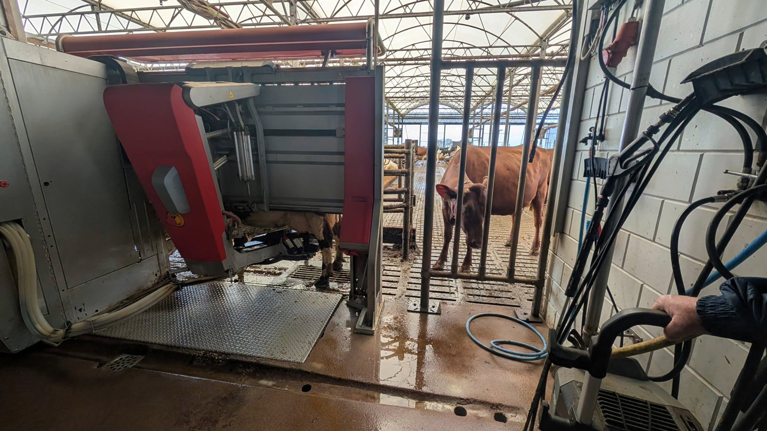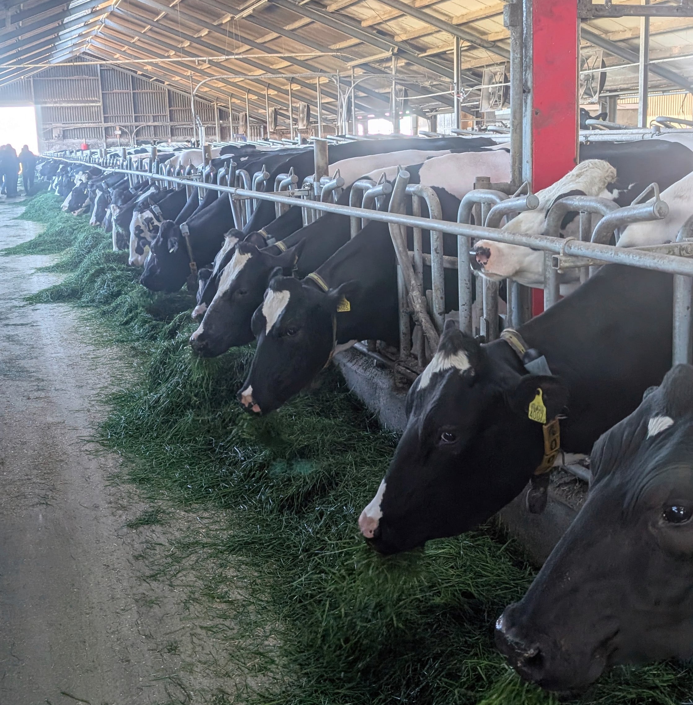 Ein erster praxisnaher Einblick bot der Milchviehbetrieb von Jochen van der Starre in Slootdorp. Der Betrieb mit rund 175 Kühen, davon werden etwa 155 gemolken, hat sich in den letzten Jahren stark in Richtung Automatisierung entwickelt. Besonders im Fokus stand dabei der Einsatz des Lely Exos als Eingrasroboter. Nachdem das Eingrasen vielerorts um 2014 aufgegeben wurde, gewinnt es nun wieder an Bedeutung – vor allem aufgrund des höheren Proteingehalts von Frischgras.