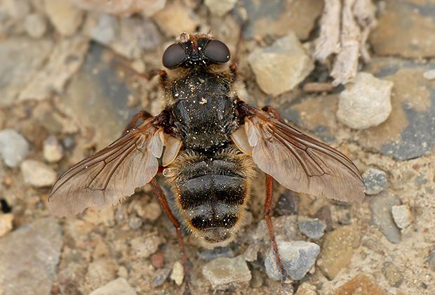 Diese kleinen Fliegen (Gasterophilus intestinalis) kleben ihre Eier an die Vorderbeine von Euqiden (seltener auch an Mähne, Flanke und Maulbereich). Da die betroffenen Stellen jucken, lecken und beissen die Pferde an dieser Stelle und nehmen so die Eier auf. Die Parasiten landen schlussendlich im Magen, wo sie sich an der Magenschleimhaut festsetzen.