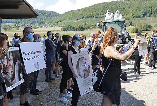 Gemäss Polizeiangaben haben sich die Aktivisten gegen 14.15 Uhr vor dem Stall versammelt. Die Personen, die aus verschiedensten Nationen stammen, hielten sich auf dem Vorplatz des Stalles auf.