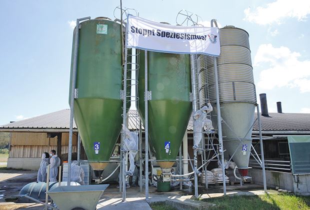 Dort wiesen sie gemäss Polizei mit Plakaten, Gesängen und Ansprachen wurde auf die Werte der Organisation hin. Zusammen mit dem Protest wurden Forderungen an den Landwirt gestellt. Die Aktion verlief ruhig und friedlich. Einige Personen verschafften sich jedoch unerlaubt Zutritt in das Gebäude durch eine unverschlossene Tür. Sie setzten die Mahnwache im Büro des Hofes fort.