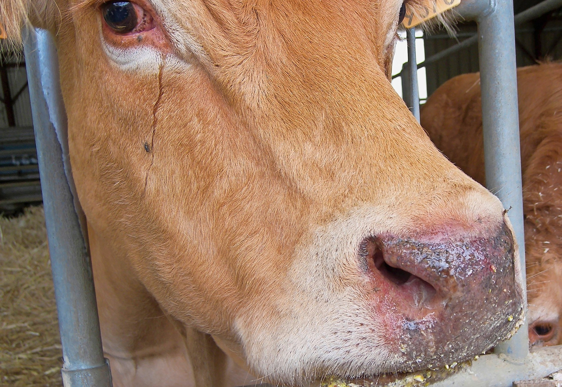 Rinder, die das Blauzungenvirus in sich tragen, können Entzündungen der Schleimhäute im Bereich der Augenlider, Maulhöhle und Genitalien aufweisen.