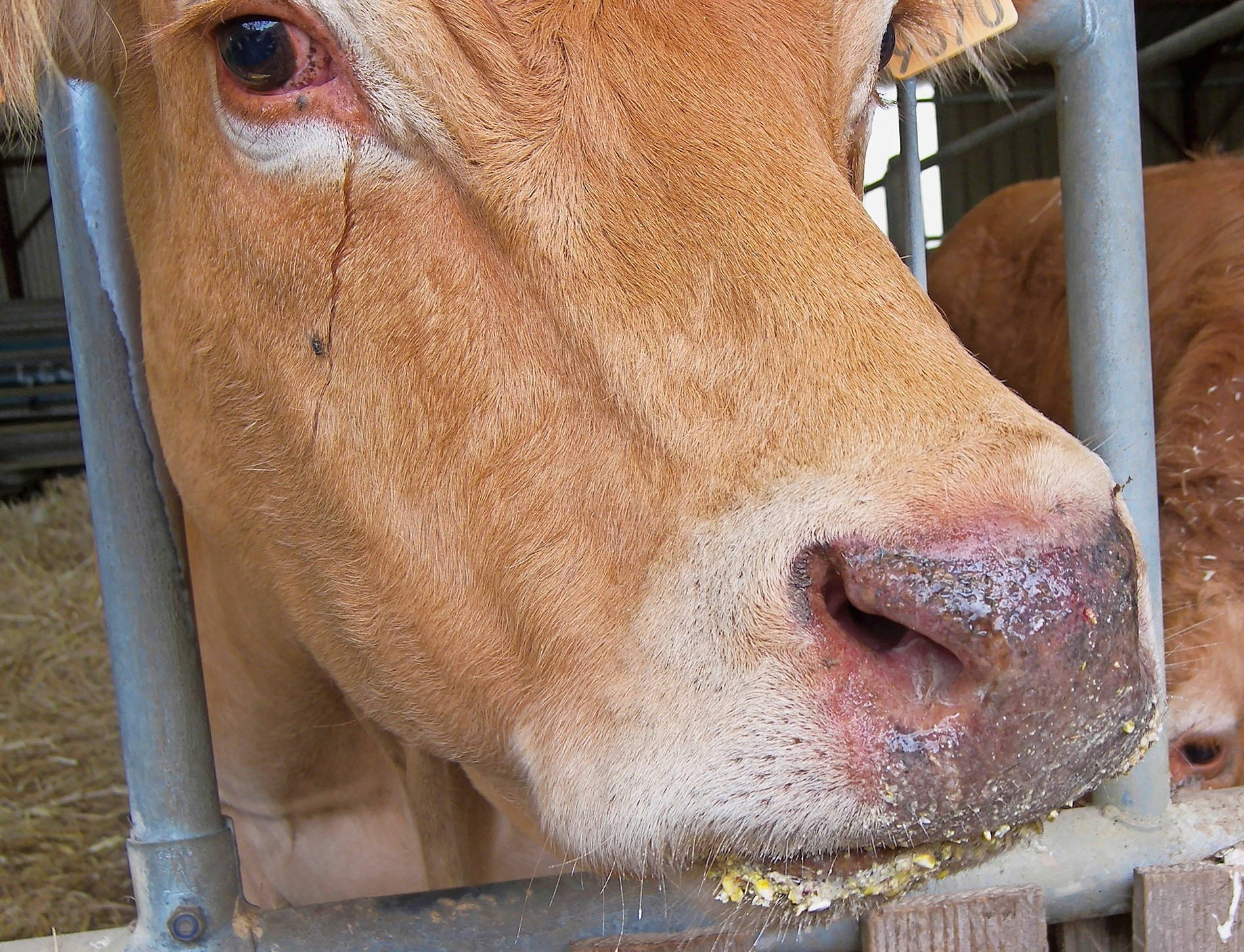 Rinder, die das Blauzungenvirus in sich tragen, können Entzündungen der Schleimhäute im Bereich der Augenlider, Maulhöhle und Genitalien aufweisen.