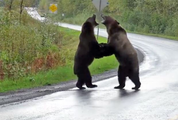 Cari McGillivray wurde Mitte September Zeugin eine Kampfes zwischen zwei Grizzlybären auf einem Highway im kanadischen Bundesstaat British Columbia. Das Video hat sie auf Facebook hochgeladen. -> Video