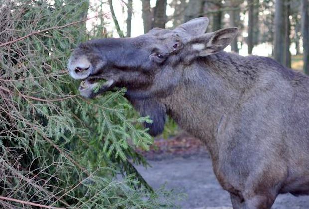 Rund sechs Christbäume frisst ein ausgewachsener Elch pro Tag. Die Tiere lieben vor allem die nährstoffreichen Pflanzenteile wie Zweige, Knospen und Nadeln, wie die Stiftung Wildnispark Zürich in einer Mitteilung vom Dienstag schreibt. Gemäss Urs von Rietmatten, Leiter Betrieb Tiere im Wildnispark Zürich Langenberg, sind Elche wahre Futterspezialisten, die ihre Nahrung ganz gezielt aussuchen. Im Frühling, Sommer und Herbst fressen sie Salweiden, bevor sie dann im Winter auf Nadelbäume umstellen.