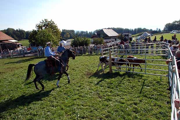 Ein nicht ganz einfaches Unterfangen, welches viel reiterisches Können, gute Teamarbeit und eine gehörige Portion "Cowsense" verlangt. Beim Cowhorse Day ging es aber nicht nur um eine möglichst rasche Zeit und viele Punkte für erfolgreich absolvierte Hindernisse.