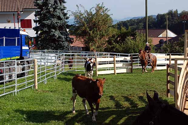Mit Kollege Nummer drei sind die Rinder komplett für den Parcours.