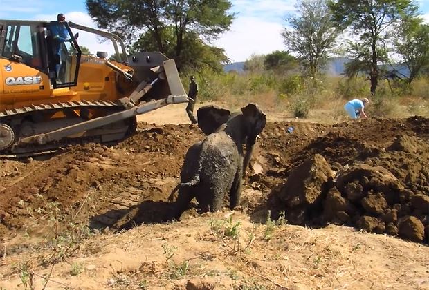 Deswegen sei eine Planierraupe eingesetzt worden, um die steilen Wände der Grube abzuflachen. Damit wurde dem geschwächten Elefanten eine Rampe geschaffen, über die er die Grube aus eigener Kraft verlassen konnte.