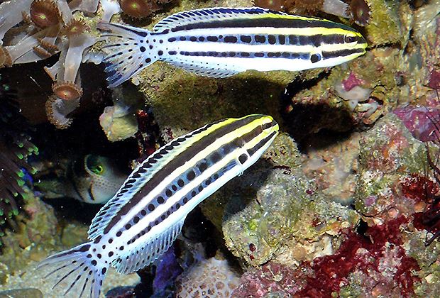 Die nur etwa 5 Zentimeter kleinen Säbelzahnschleimfische (Nemophini) kommen im Pazifik vor, unter anderem am Great Barrier Reef, dem weltgrössten Korallenriff vor der Küste Australiens. Die Fische werden auch in Aquarien gehalten. Wegen der Korallenbleiche am Great Barrier Reef - dem Absterben von Korallenstöcken durch hohe Wassertemperaturen - wird befürchtet, dass dort auch mehr und mehr Fischarten verschwinden.