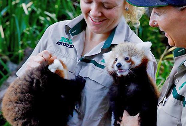 Keta und Mandu, beide männlich, kamen am 10. Dezember im Zoo von Melbourne auf die Welt. Ihre Eltern sind die achtjährige Roshani, die im Zoo von Perth zur Welt kam, und der fünfjährige Seba aus dem Zoo von Sydney. Pandas mit rötlichem Fell leben überwiegend in Nepal und China. Die Art ist gefährdet. Nach Schätzungen gibt es nur noch 10'000 Exemplare.