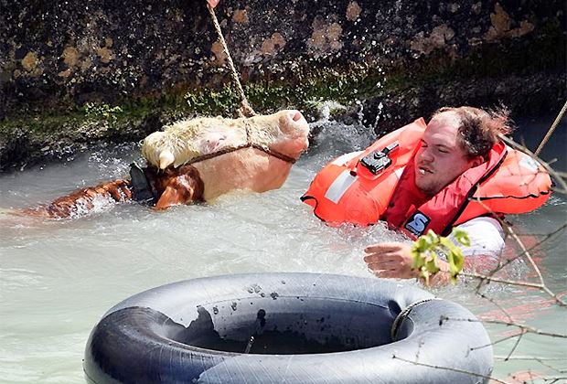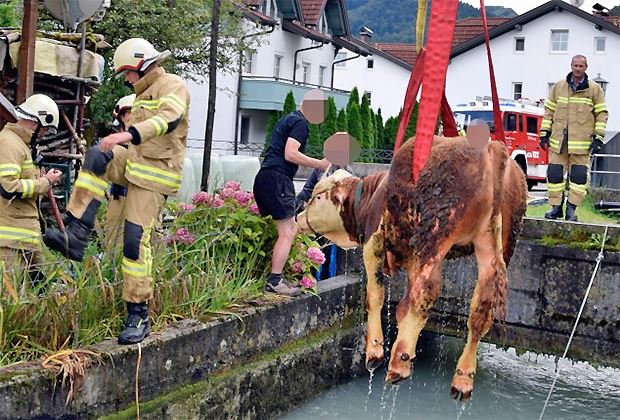 „Mucki“ drohte zu ertrinken. Er trieb 20 Meter durch den Kanal. Sein Besitzer, Landwirt Josef Wiesner, gelang es, den Kopf des 500 Kilo schweren Muni über Wasser zu halten. Der Feuerwehr gelang es in der Folge, den Stier mittels Teleskoparm aus seiner misslichen Lage zu befreien, wie salzburg24.at schreibt.