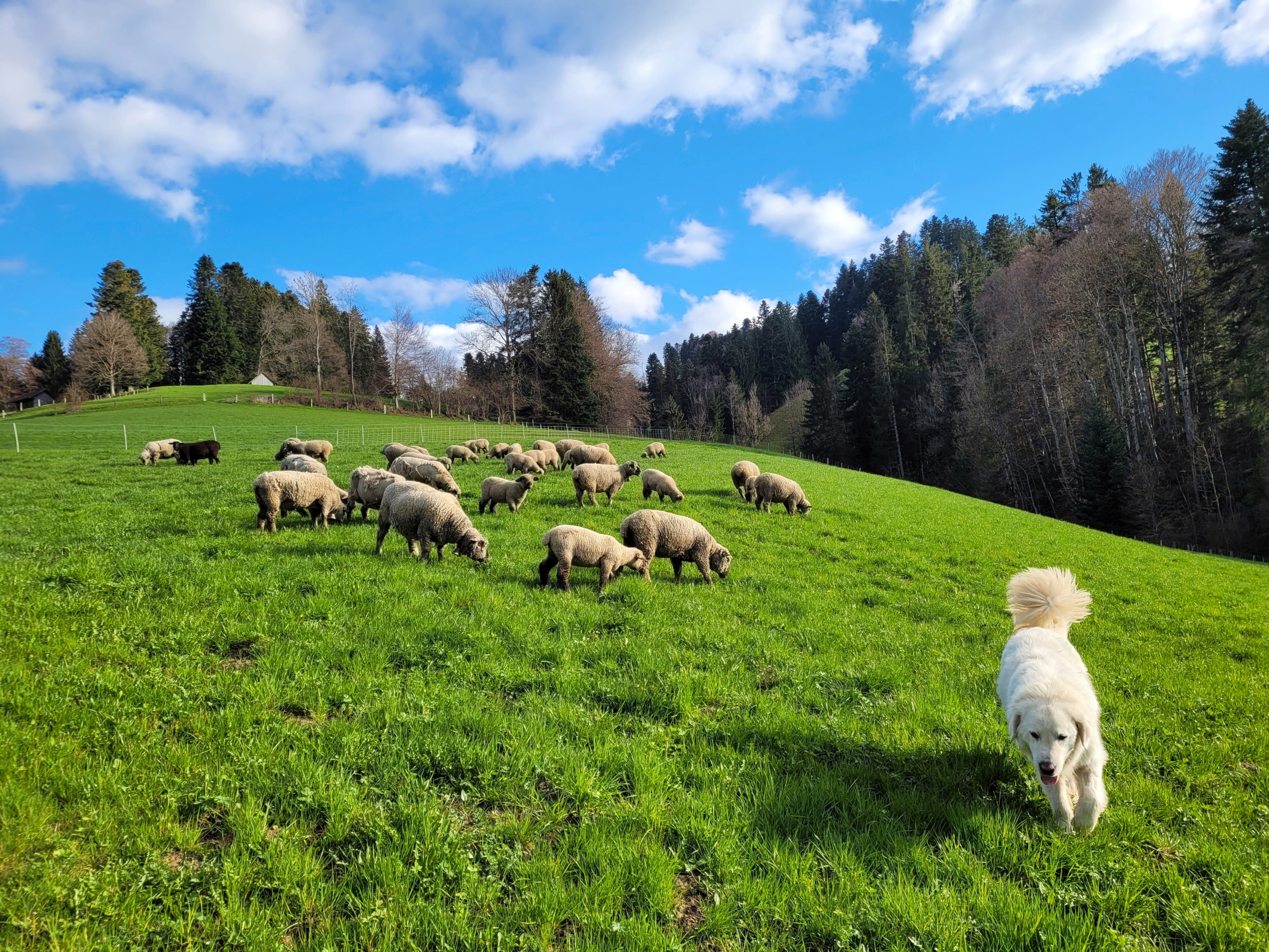Zum Schutz der Nutztiere werden auch Herdenschutzhunde eingesetzt.
