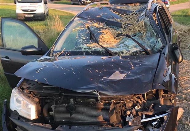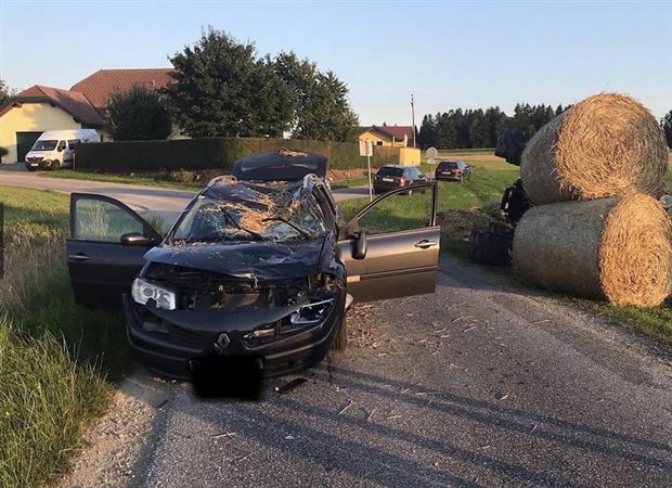 In Österreich, in der Gemeinde Neukirchen am Walde (Bezirk Grieskirchen) hat am Montagabend ein mit Strohrundballen beladener Traktor ein entgegenkommendes Auto überrollt. Die betroffenen Personen hatten enormes Glück.