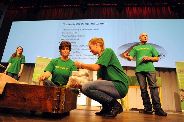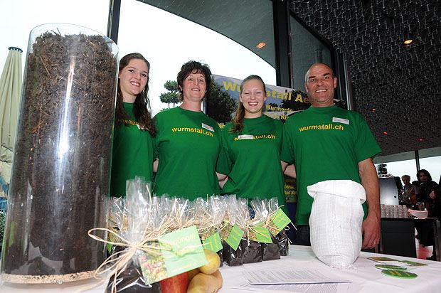 16.47 Uhr: Die Familie Fuhrer mit dem Projekt Wurmstall haben ihren grossen Auftritt. Die Wurmerde findet als Biodünger Einsatz bei Gärtnereien und Privaten. Der "grösste Arbeitgeber der Schweiz" produziert mit 6 Millionen Würmer aus Mist Dünger. Das Innovative liegt im System. Die Mieten sind nicht am Boden, sondern es erfolgt eine Trennung zwischen Futter für die Würmer (Mist) und der Erde, die zu Boden fällt. "Unsere Wurmerde lebt und belebt somit die auch die Erde, wo sie eingesetzt wird", erklärt Hans Fuhrer. Fuhrers arbeiten mit drei Arten, sogenannten Oberflächenfresser.