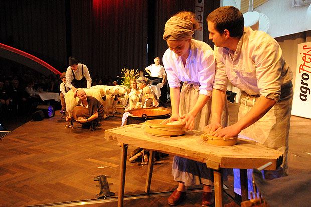 17.04 Uhr: Die Familie Henchoz aus Rossinière stellt ihr Projekt "Le Sapalet" vor. Die Präsentation startert mit spektakulären Filmaufnahmen vom Betrieb. Dabei werden alle Facetten gezeigt, sei über die moderne Melkanlage, die Alpung der Schafe, die Produktion ihrer Joghurts, Käse und vielen anderem. Eindrücklich wird die Herstellung der Produkte und die damit verbundene Arbeit in einem Theaterstück dokumentiert. Der grössten Schafmilchproduzenten ernten grossen Applaus für ihre Darbietung. "Der grösste Unterschied sei die Milchleistung der Tiere. Ein Schaf gibt 1 bis 1,5 Liter, ein Kuh deutlich mehr", erklärt Jean-Robert Henchoz. Auch die Gehalte sind anders. Der hohe Fettgehalt sei besser für die Verarbeitung, beonte Henchoz.