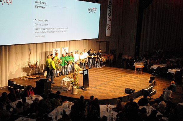 Jurypräsident Roland Stähli würdigte in seiner Laudatio sämtliche Nominierte. Um den Sieger zu ermitteln, wird ein Bewertungsverfahren vorgenommen. Dieses setzt sich aus den fünf Faktoren "Besondere Innovation", "neuen Ansatz überzeugend umsetzen", "Wirtschaftlichkeit", "positive Auswirkung auf den Betrieb und die Region" sowie "Langfristigkeit" zusammen. "Alle Projekte haben diese Punkte in unterschiedlicher Weise erfüllt", lässt Stähli das Publikum wissen.