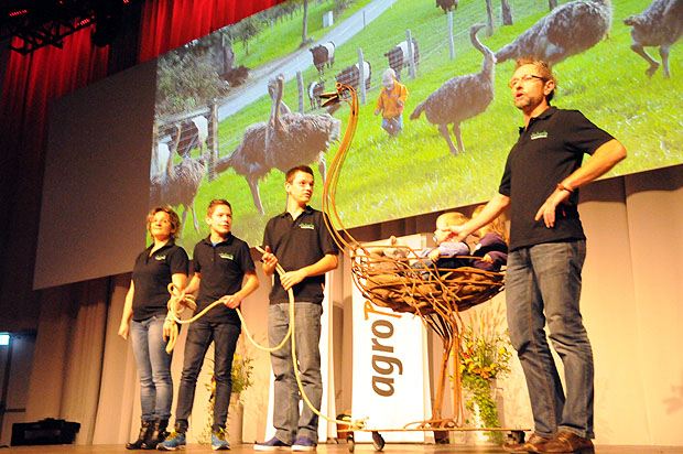 16.30 Uhr: Die letztjährigen Sieger, die Familie Rüedi aus Trasadingen SH mit ihren "Fasstastische Ferien" tritt auf die Bühne. Der Agropreis habe ihnen viel Populatrität verschafft. "Auch die zahlreichen Medienberichte nach dem Gewinn des Agrorpreises haben unseren Bekanntheitsgrad massgeblich erhöht", betont Andreas Rüedi.