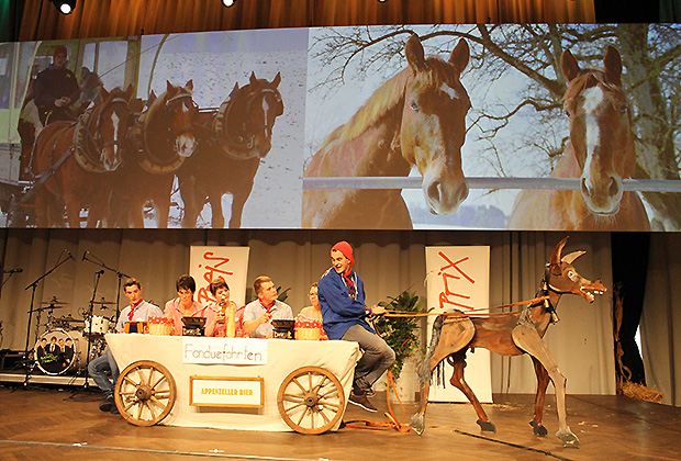 15.50 Uhr: Das erste Projekt „Kutschenfahrt mit Fondueplausch“ stellt sich vor. Die Familie Scherrer entwickelte Fonduekutschen, mit welchen sich im Toggenburg Gäste durch die Region Bütschwil „kutschieren“. Mit diesem Angebot gelingt es Scherrers, Touristen und Wertschöpfung in die Gegend zu bringen. Sandro Scherrer erläutert das Angebot der Familie. Da sie im Winter die Pferde platzieren mussten, suchten sie nach Alternativen. Die Gäste können zu einem feinen Fondue die reizende Gegend des Toggenburgs geniessen. Damit können sie ein bisher brachliegendes Potenzial für sich nutzen. Die Fahrten haben sich zu einem zweiten Standbein des Familienbetriebes entwickelt.