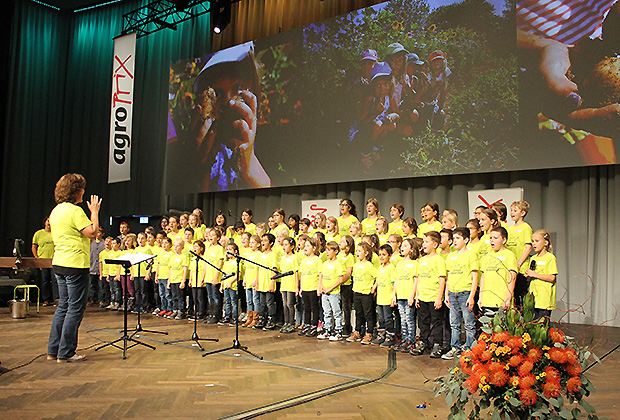 16.25 Uhr: Als drittes Projekt präsentiert sich die Familie Pfefferli. Judith und Franz Pfefferli sowie 50 Kinder haben sich auf der Bühne eingefunden. Pfefferlis bieten auf ihren eine Vielzahl an Kursen an. Sie zeigen, wie die Landwirtschaft funktioniert. „Es ist dringend notwendig, dass wir den Kindern wieder zeigen, woher die Milch oder die Kartoffel stammt“, so Judith Pfefferli. „Die Kinder sind die Konsumenten von morgen“, so fährt sie fort. Das Projekt „Lernort Pfefferli“ liesse sich auf auch andere Höfe adaptieren. „Die Frau ist die beste Kuh im Stall“, sagte sie im ironischen Unterton. Für viele Betriebe könnte das Konzept von der Familie als zweites Standbein in Frage kommen. Das Projekt ermöglicht ein gesichertes Einkommen. Der Nettostundenlohn liegt bei weit über 30 Franken. Die singenden Kinder haben das Publikum zu tosendem Applaus veranlasst. Haben sich die Pfefferlis damit bereits den Saalpreis gesichert?