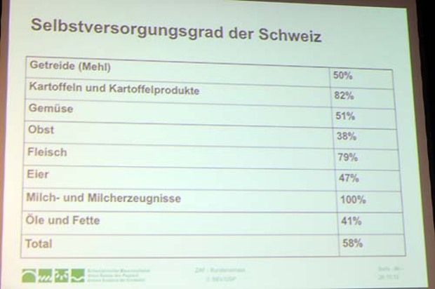 Selbstversorgungsgrad verschiedener Agrargüter in der Schweiz. -