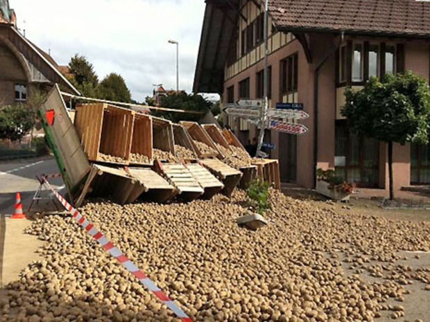 Am Donnerstagnachmittag fuhr ein Traktorfahrer mit zwei Anhängern, die er mit Kartoffeln gefüllten Paloxen geladen hatte, von Huttwil BE in Richtung Langenthal BE. In Rohrbach musste er aufgrund einer Baustelle abbremsen. Dabei gerieten die beiden Anhänger ins Schleudern. Der Traktor drehte gemäss der Kantonspolizei Bern in die entgegengesetzte Richtung und kippte wie die beiden Anhänger um. Der grösste Teil der Kartoffeln fiel auf die Strasse.