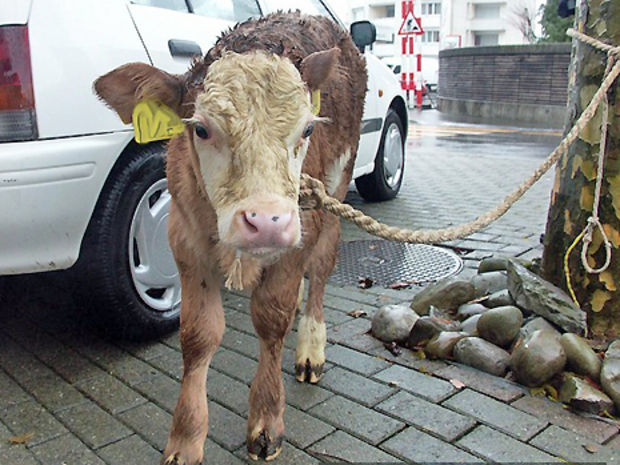Der Autofahrer aber, welcher hinter dem Tiertransporter her fuhr und Rogers Sturz beobachtet hatte, habe umgehend die Polizei informiert, sagte ein Sprecher der Kantonspolizei Schwyz auf Anfrage.Das Kalb überstand den Unfall nicht nur ohne grossen Verletzungen sondern scheinbar auch ohne grossen Schock: Es liess sich jedenfalls widerstandslos mit einem Seil an einen Baum binden und wartete dort, bis es von seinen Besitzern abgeholt wurde.
