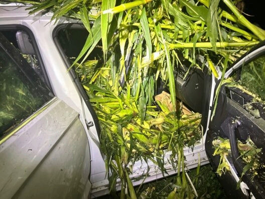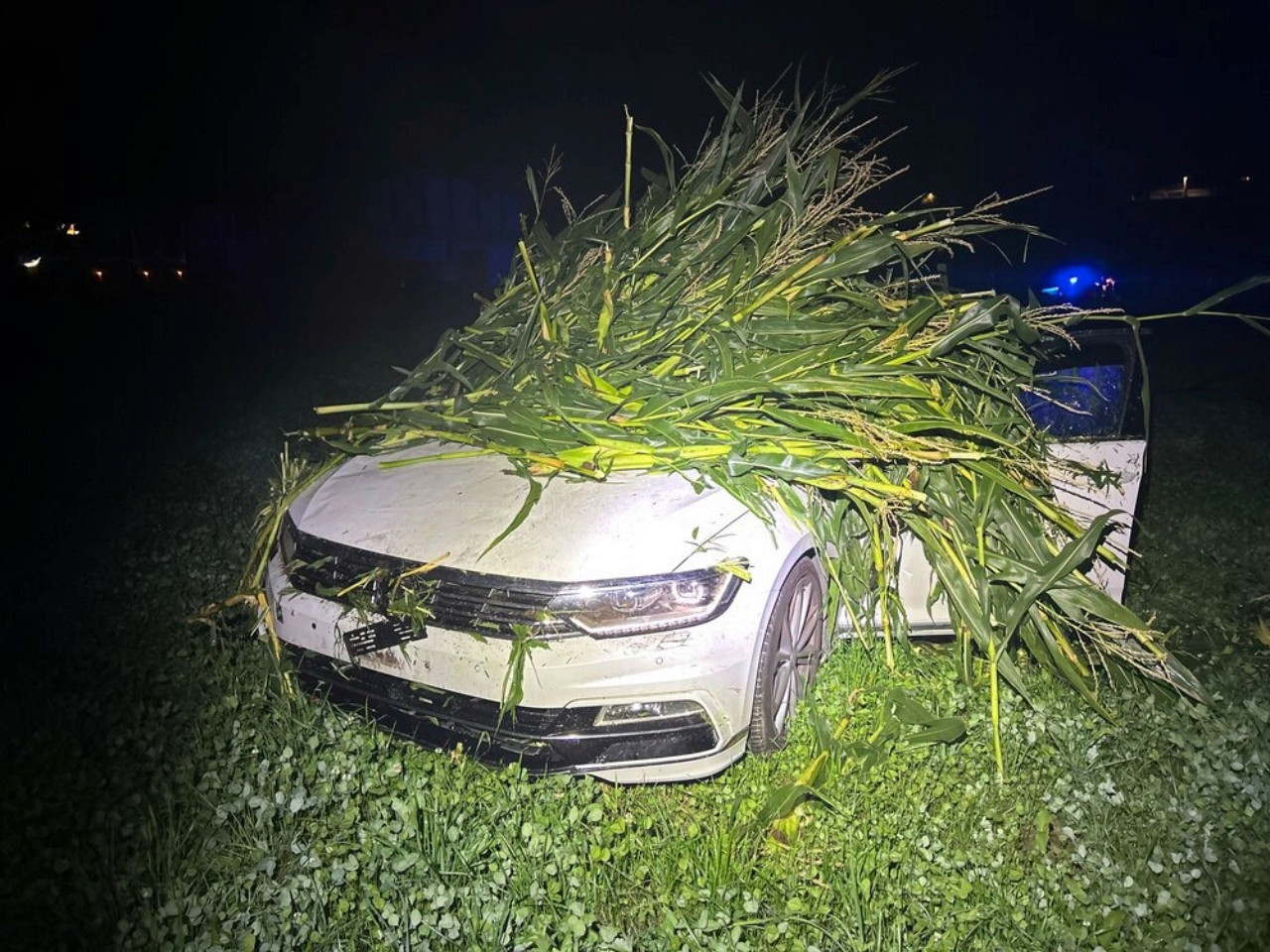 Am Fahrzeug und Maisfeld sind erhebliche Schäden entstanden.