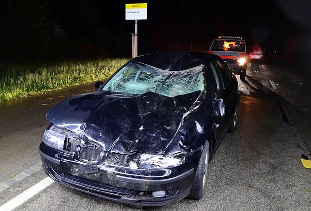 Das Fahrzeug wurde massiv beschädigt und musste abgeschleppt werden. Weshalb die Tiere auf die Strasse gerannt sind, wurde nicht kommuniziert.