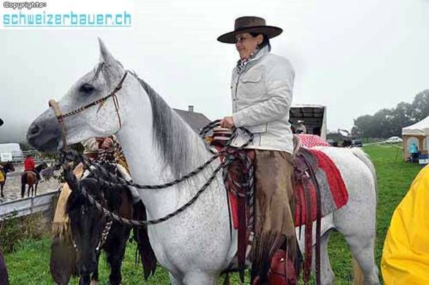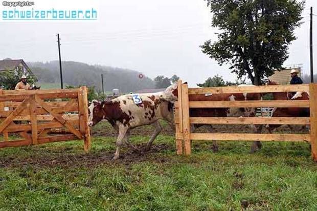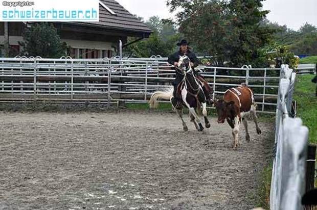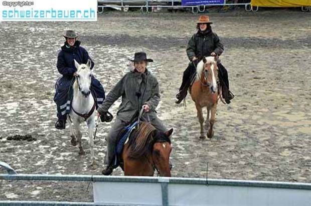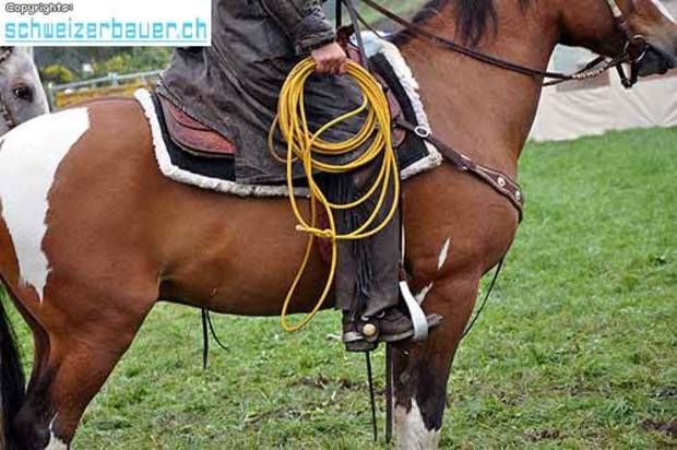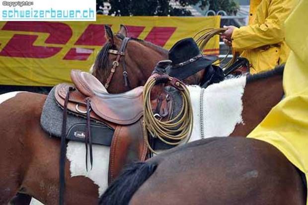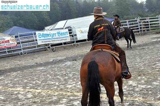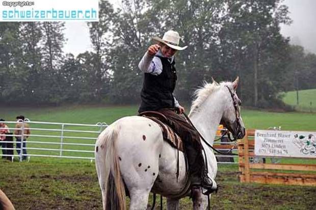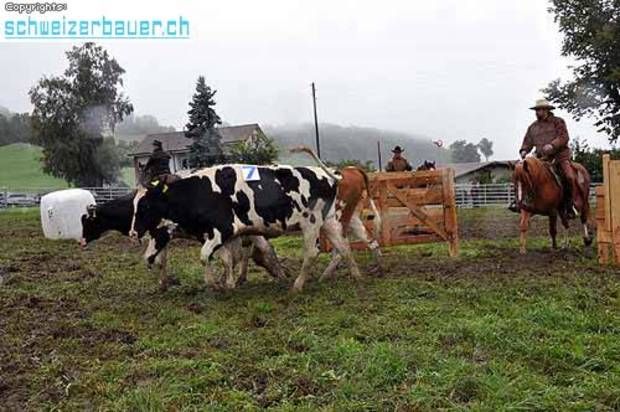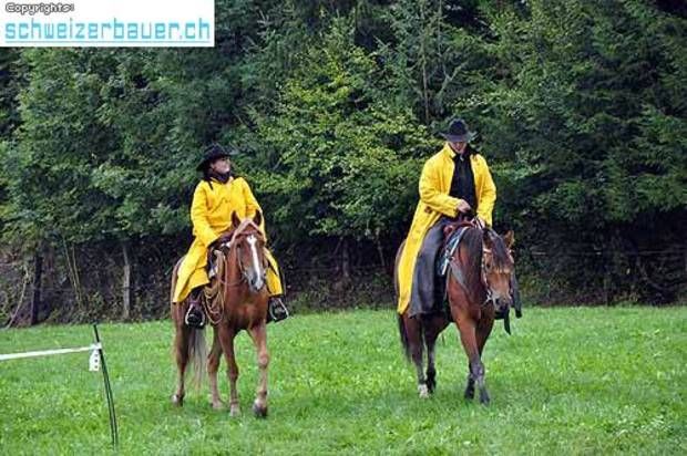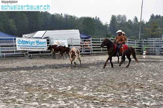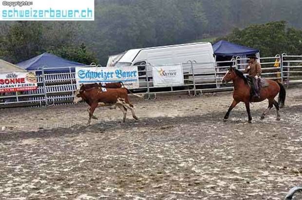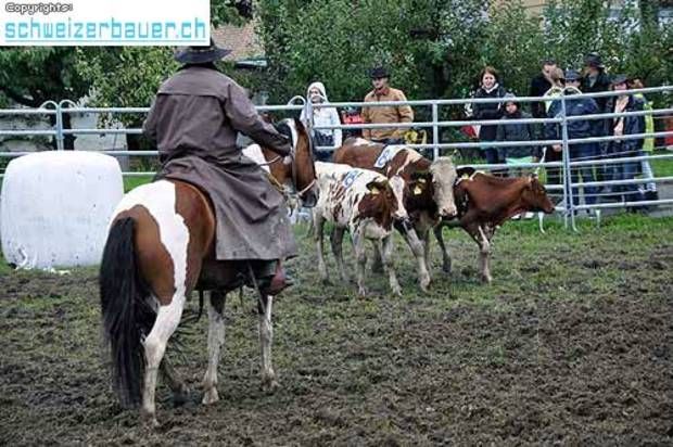 Am Cowhorse Day massen sich Cowboys und -girls in der Rinderarbeit. Ein faszinierendes Schauspiel für Gross und Klein. Der Dauerregen konnte dem 8. Working Cowhorse Day in Riggisberg nichts von seinem Charme nehmen. Bilder: Pamela Fehrenbach.